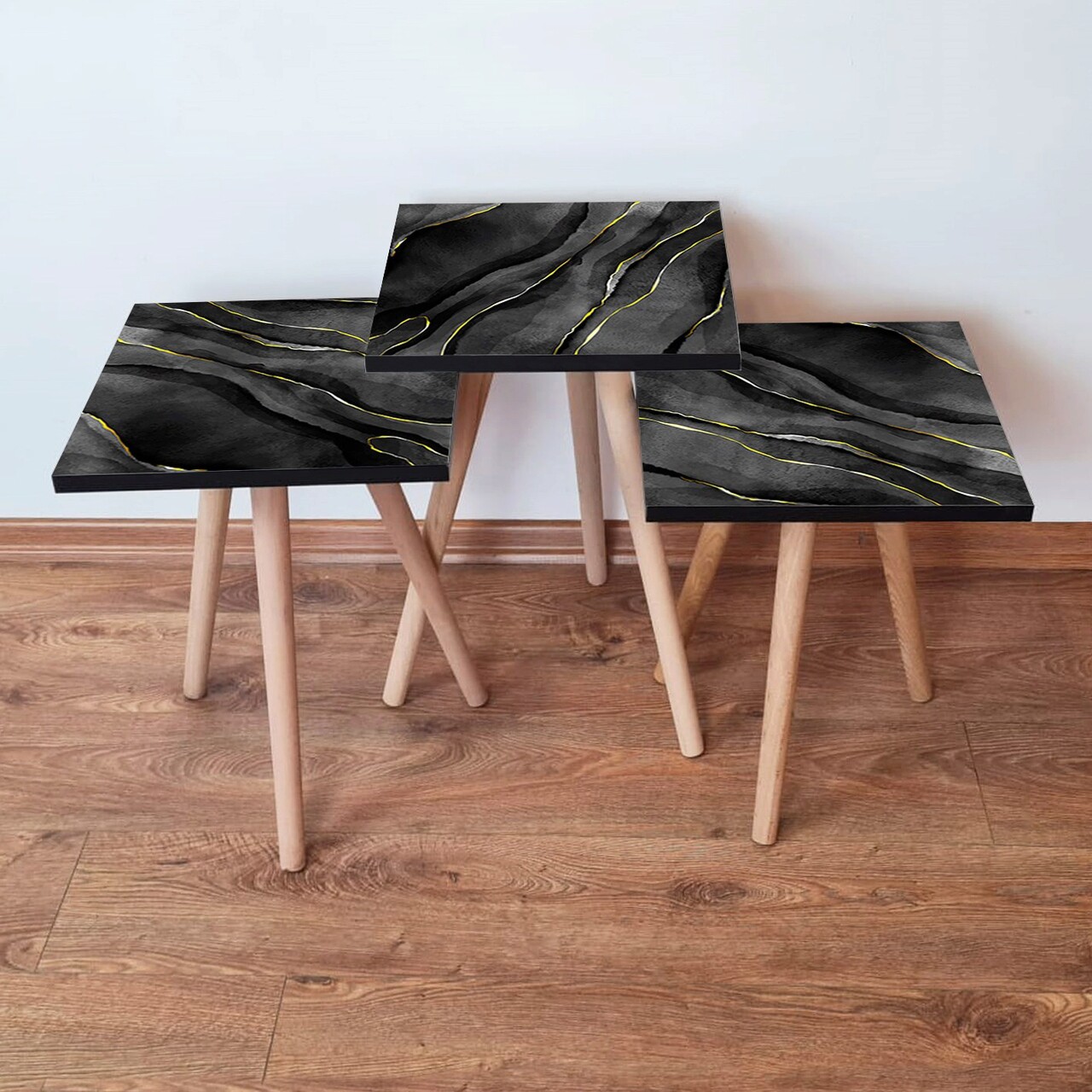 Set masute 3 piese, Hanah Home, 3Shp164, Negru / Gri / Auriu