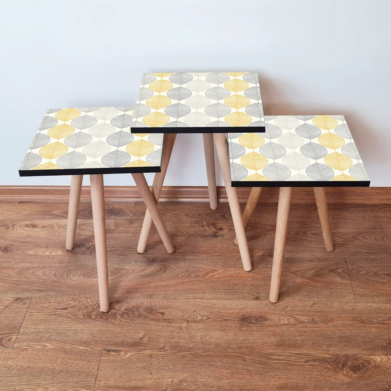 Set masute 3 piese, Hanah Home, 3Shp177, Gri / Alb / Galben