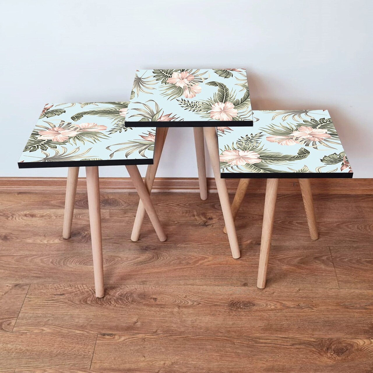 Set masute 3 piese, Hanah Home, 3Shp207, Albastru / Roz deschis / Verde
