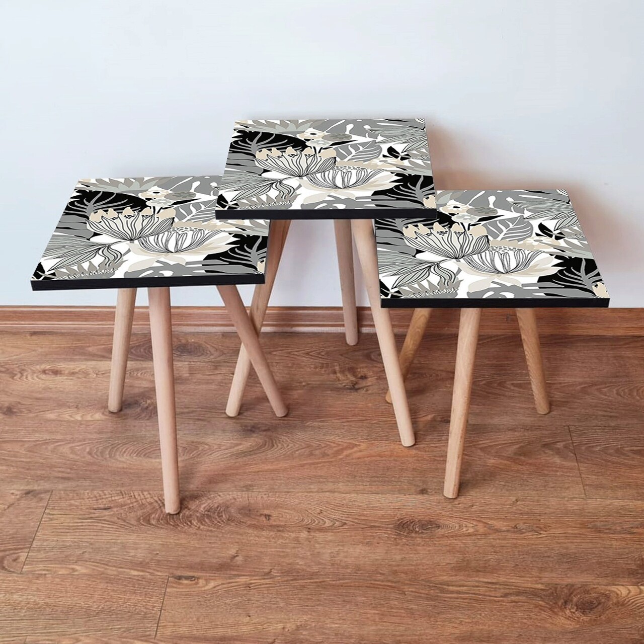 Set masute 3 piese, Hanah Home, 3Shp213, Alb / Negru / Bej