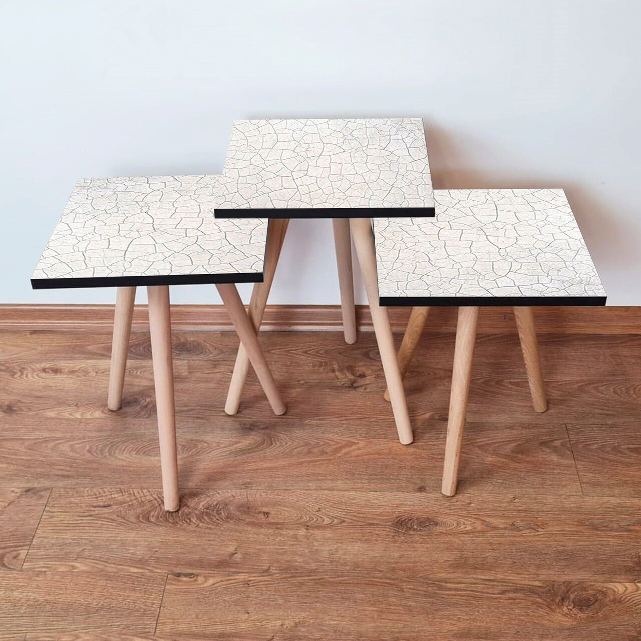 Set masute 3 piese, Hanah Home, 3Shp221, Alb/Gri