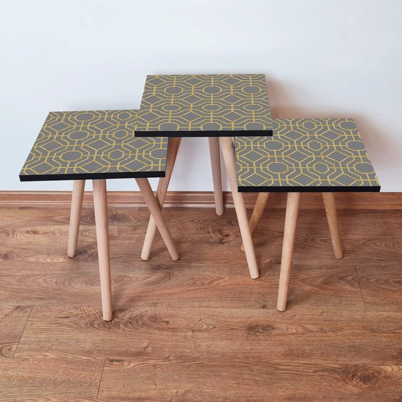 Set masute 3 piese, Hanah Home, 3Shp238, Gri / Galben