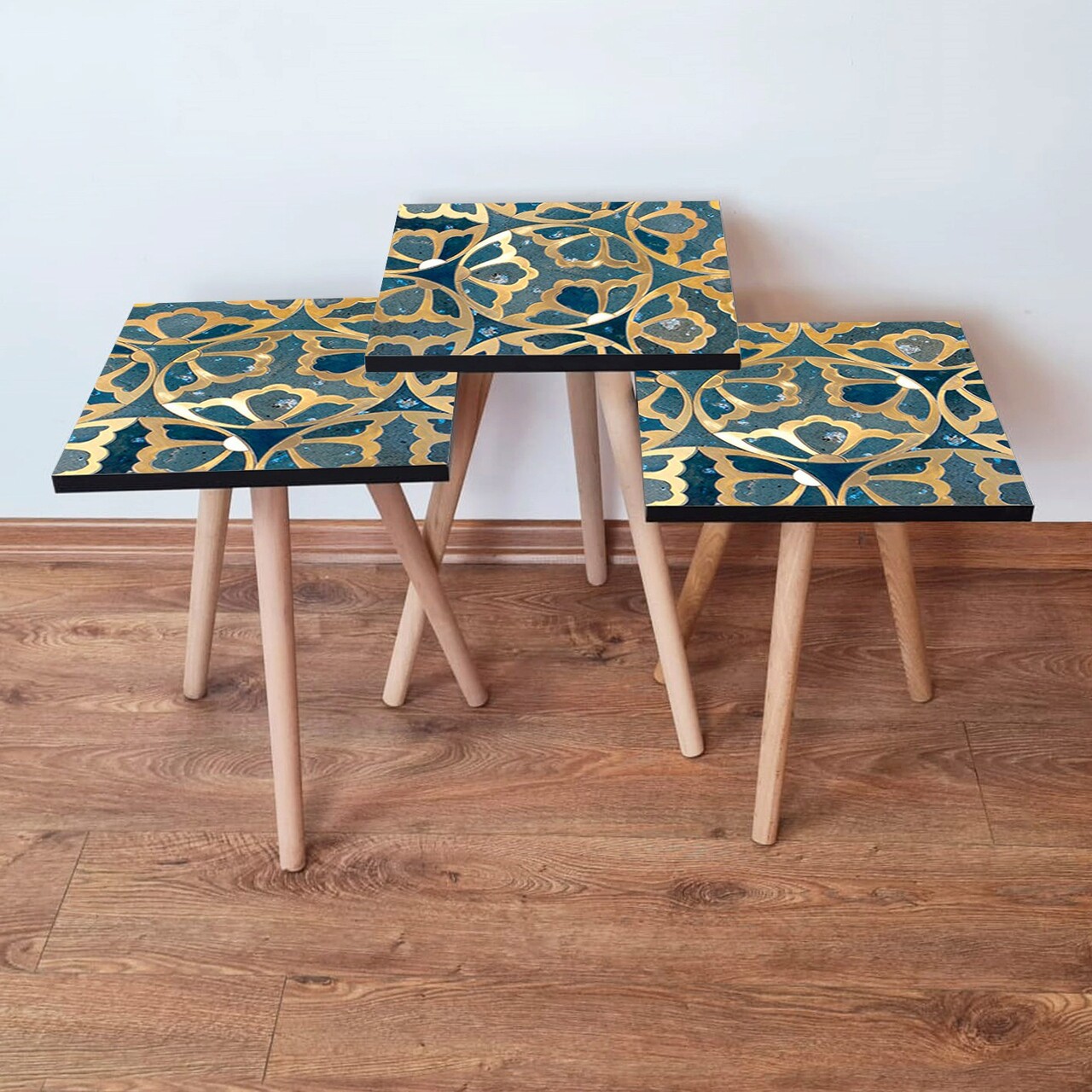 Set masute 3 piese, Hanah Home, 3Shp274, Bleumarin/Auriu