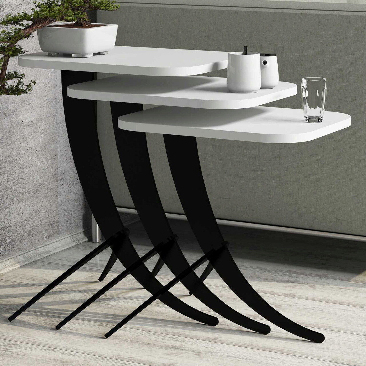 Set masute 3 piese, Hommy Craft, Pion, PAL, Alb