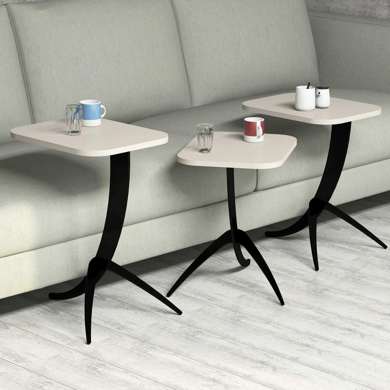Set masute 3 piese, Hommy Craft, Pion, PAL, Crem