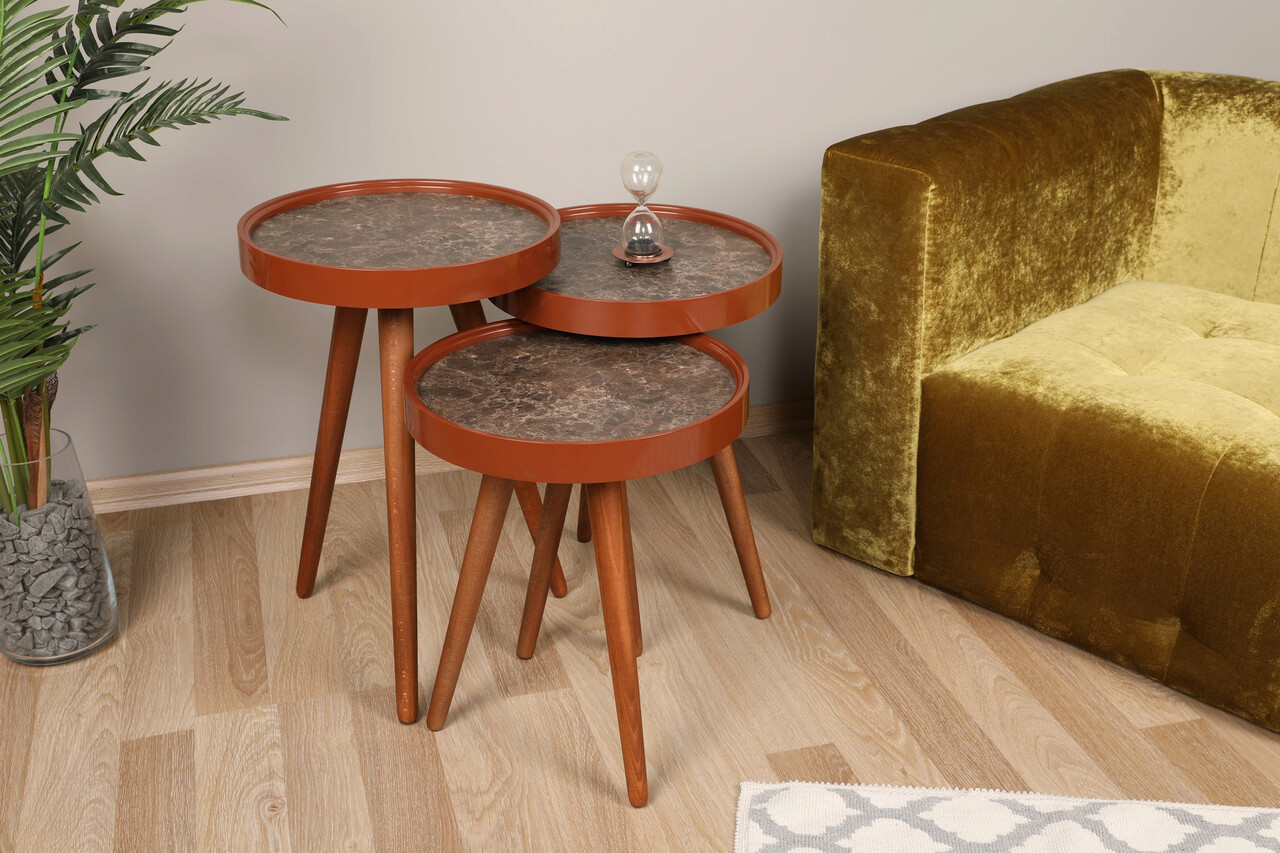 Set masute 3 piese, Kate, Linea, Nuc / Gri