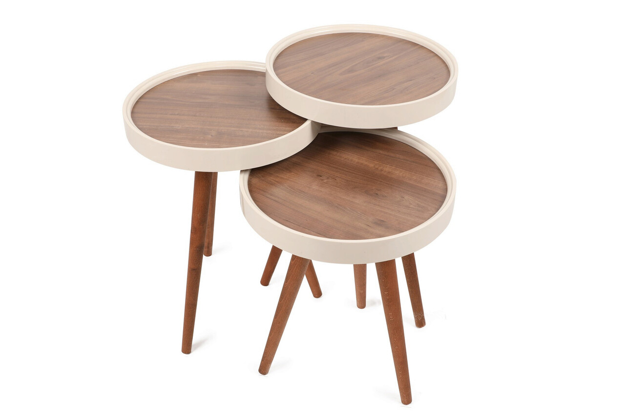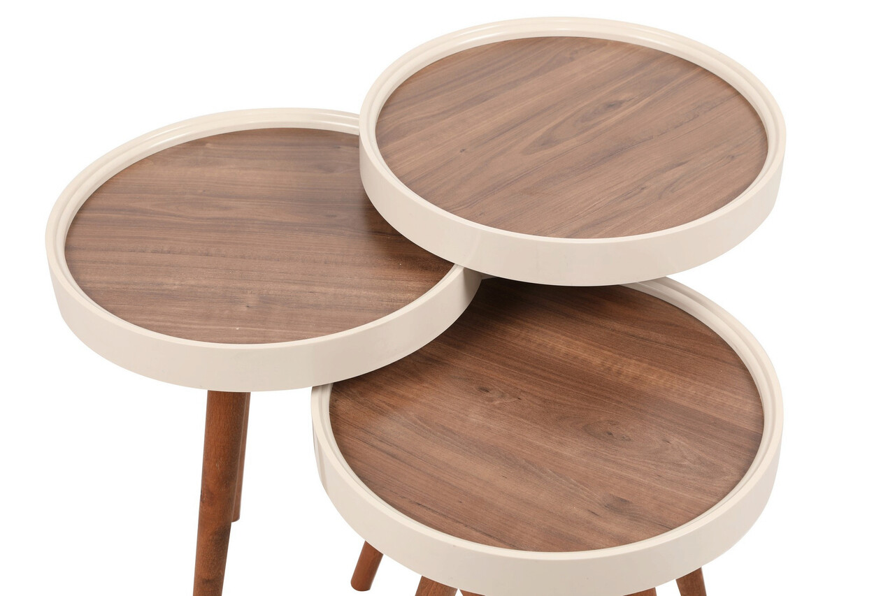 Set masute 3 piese, Kate, Wood, Maro/Crem