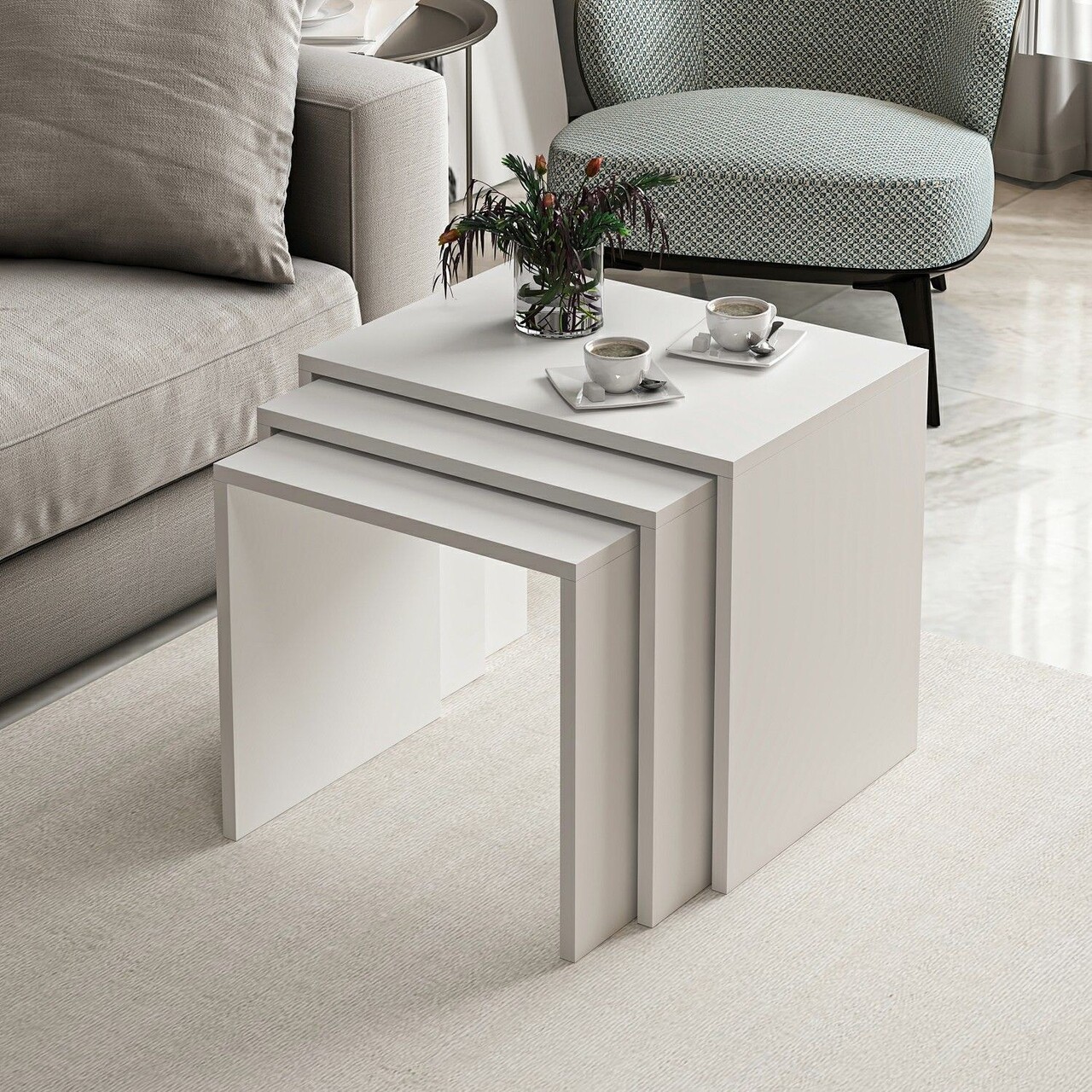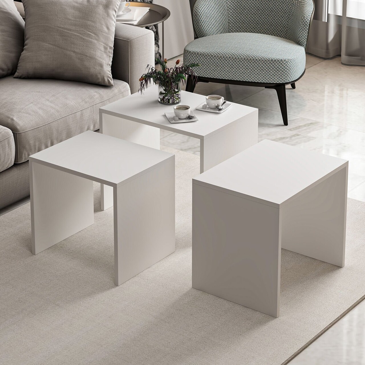 Set masute 3 piese, Minerva, Alya, PAL, Alb