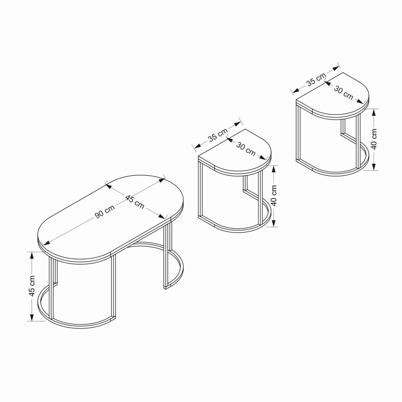 Set masute 3 piese, Minerva, Dena, PAL, Stejar / Antracit
