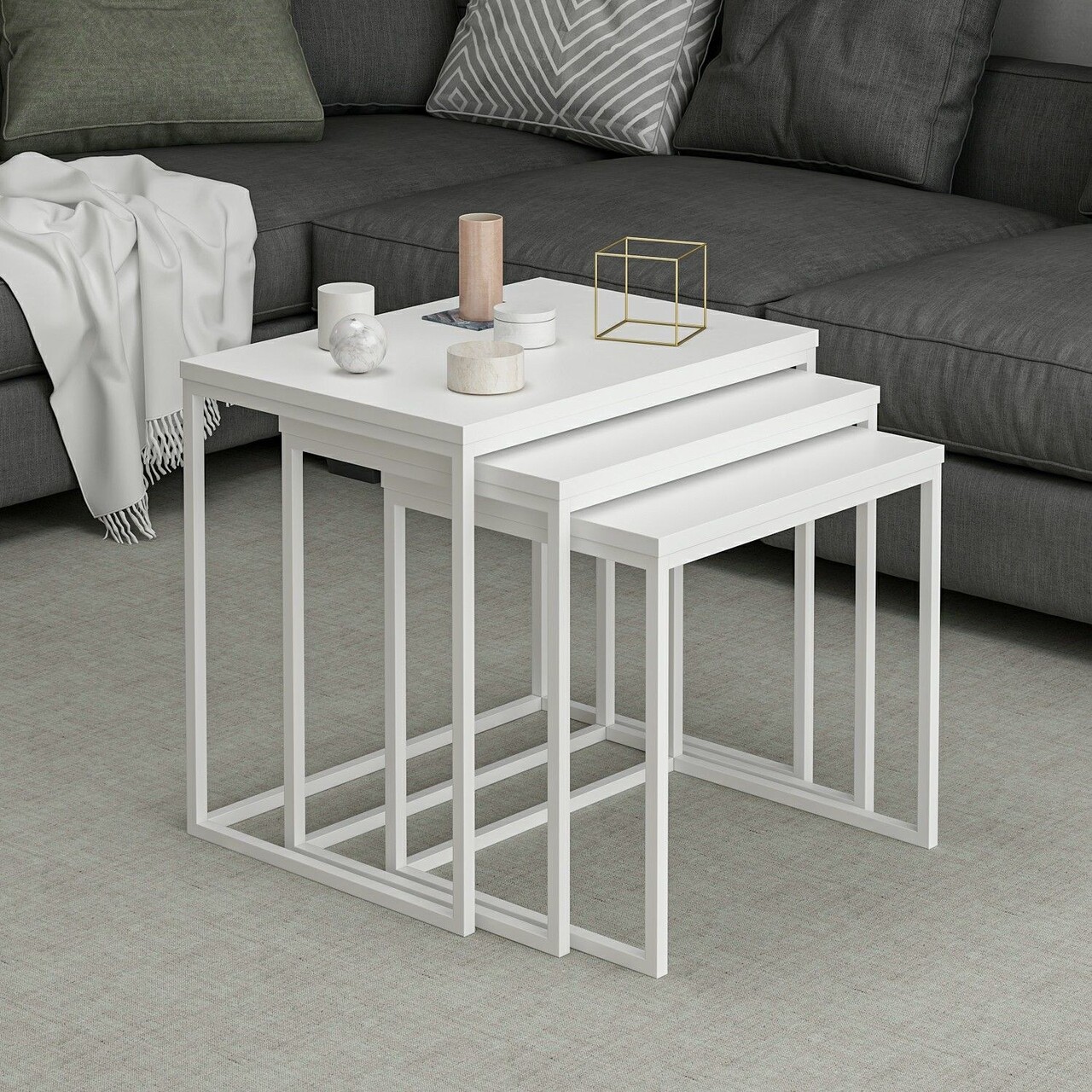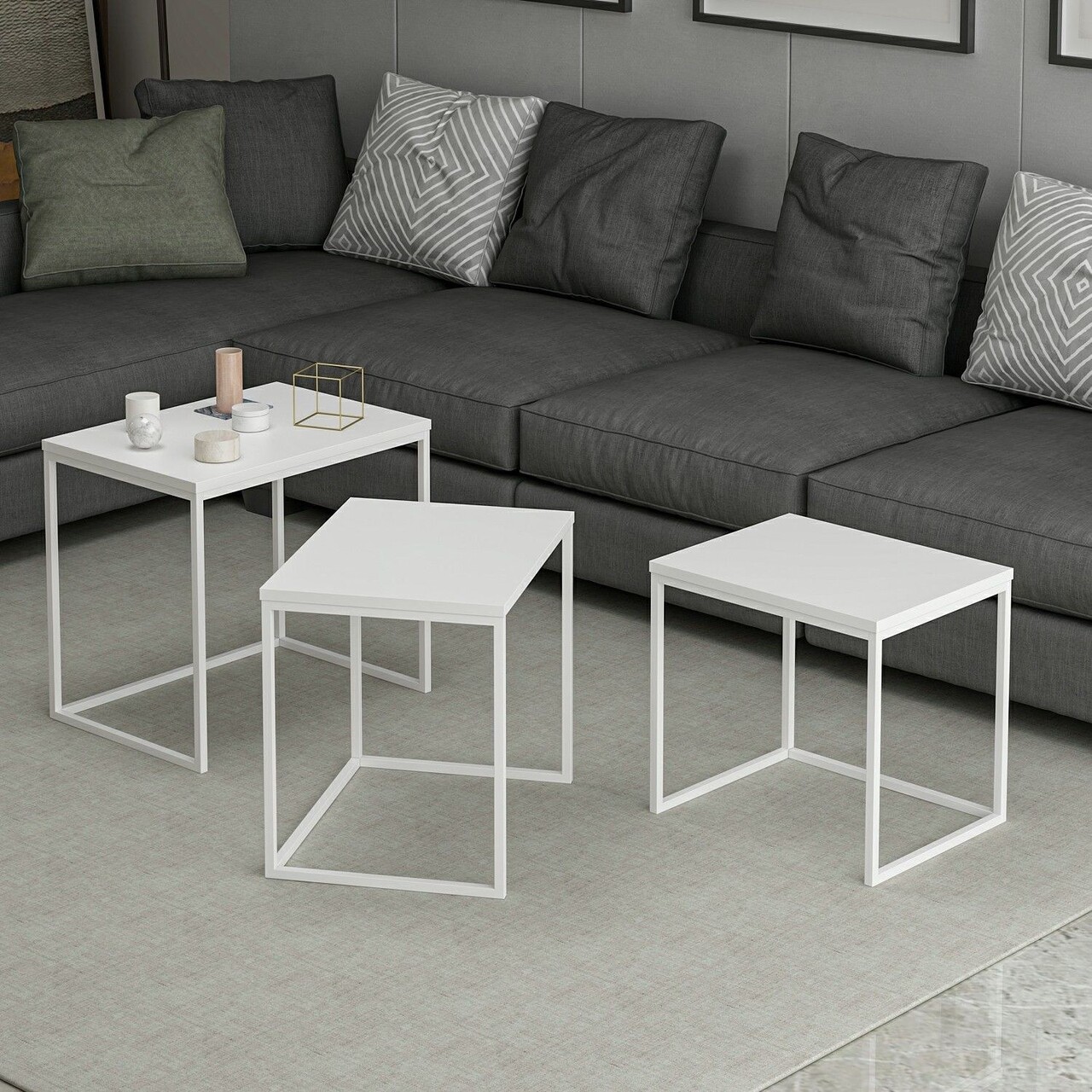 Set masute 3 piese, Minerva, Evia, PAL, Alb
