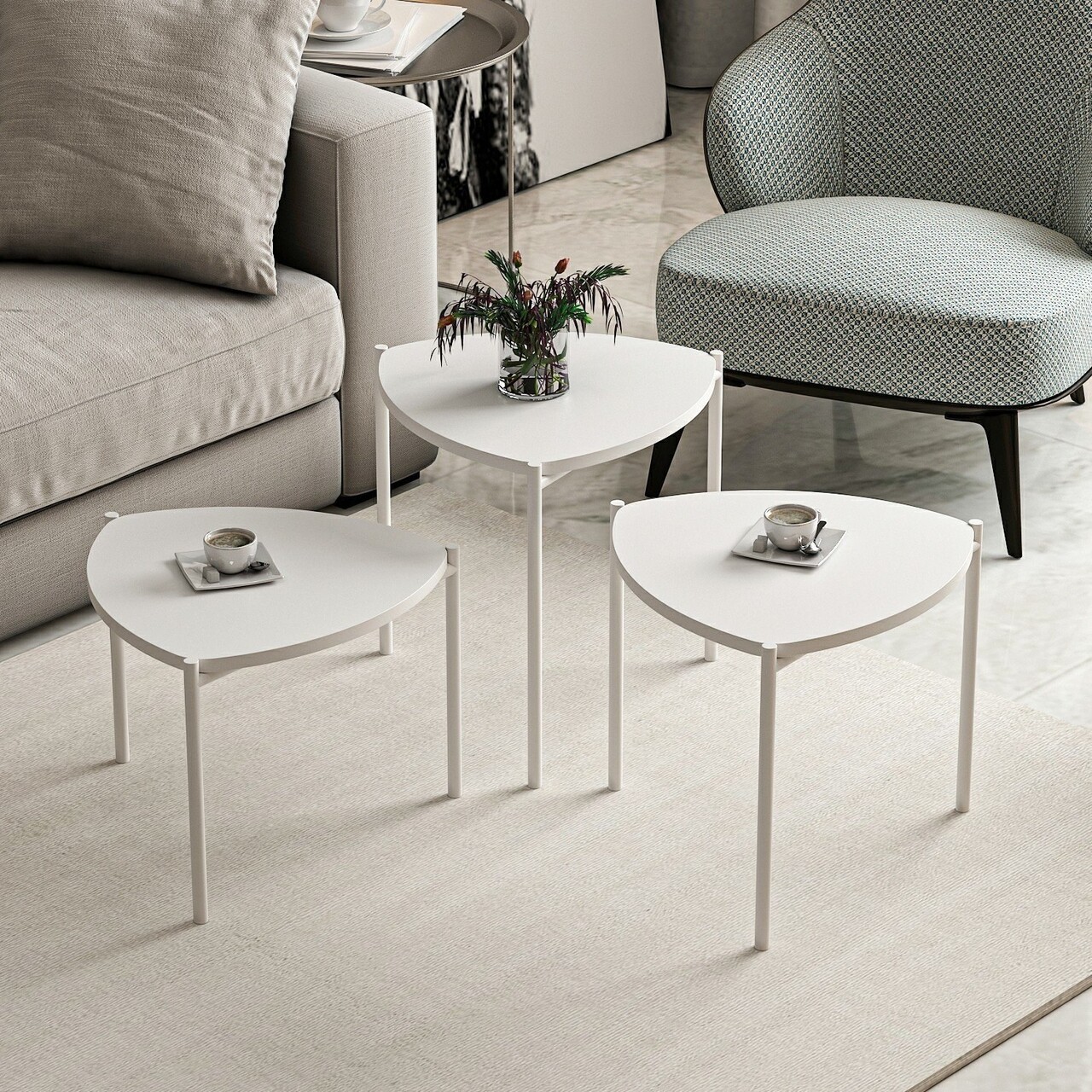 Set masute 3 piese, Minerva, Lenny, PAL, Alb