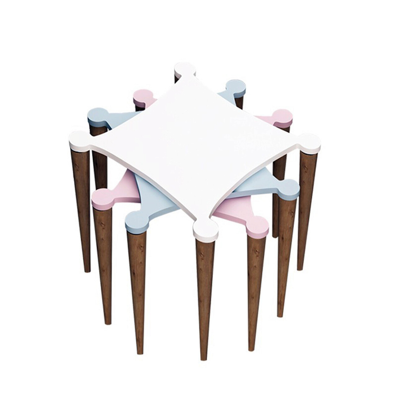 Set masute 3 piese, Mod Design, Tremo, PAL, Alb / Roz / Albastru / Nuc