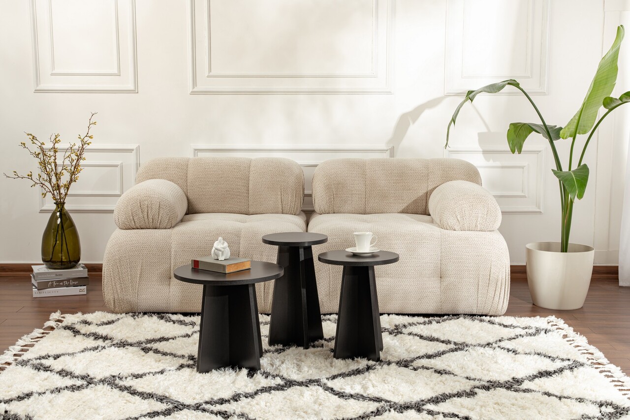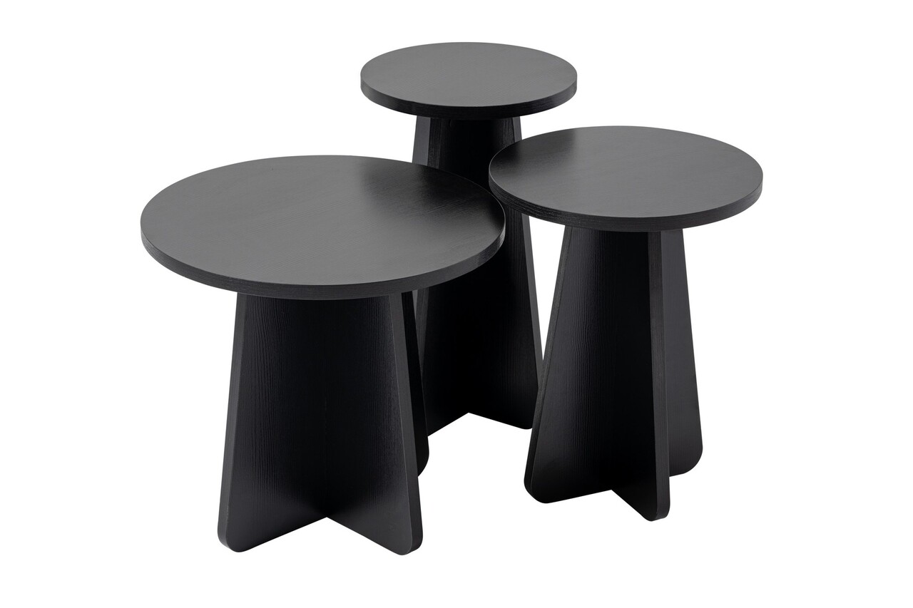 Set masute 3 piese, Nordure, Lume, PAL, Negru
