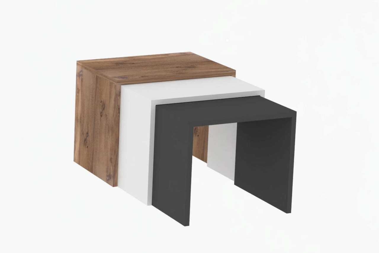 Set masute 3 piese, Puqa Design, Gül, PAL, Antracit / Stejar / Alb