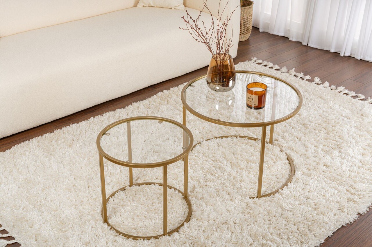 Set masute de cafea, Cerritos, Gold-Transparent-60-42, Sticla temperata, Auriu