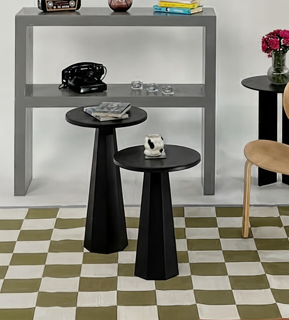 Set masute de cafea, Hanah Home, Lilyum (57 + 47), Negru