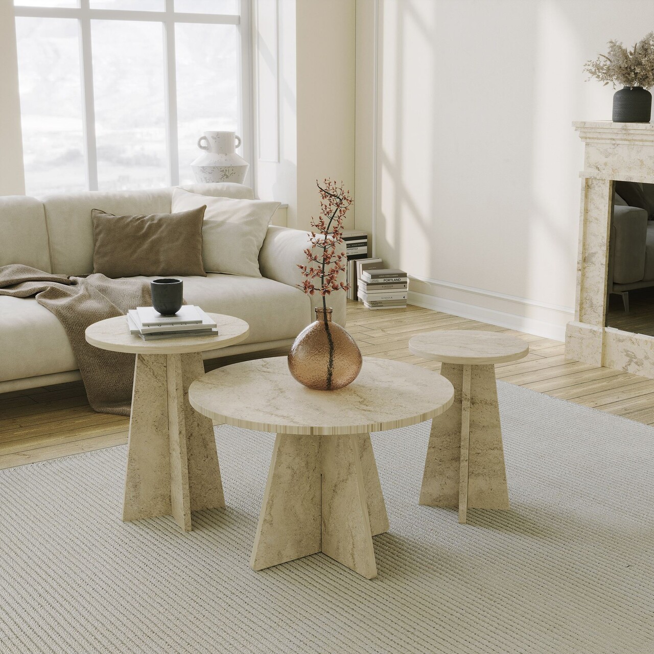 Set masute de cafea, Hanah Home, Mushroom 3, PAL, Travertin