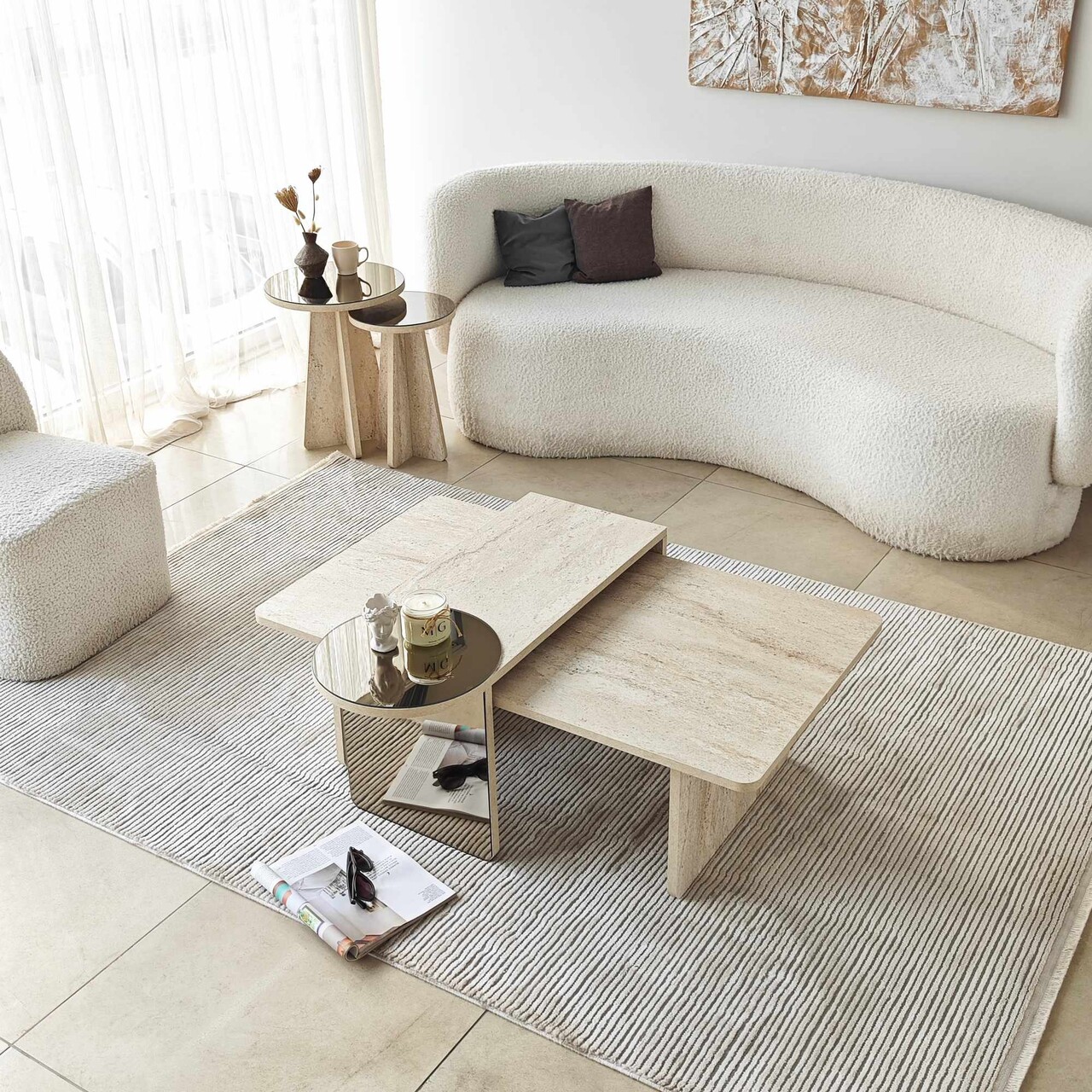 Set masute Nesting 4 piese, Hanah Home, Luna, PAL, Travertine / Bronze
