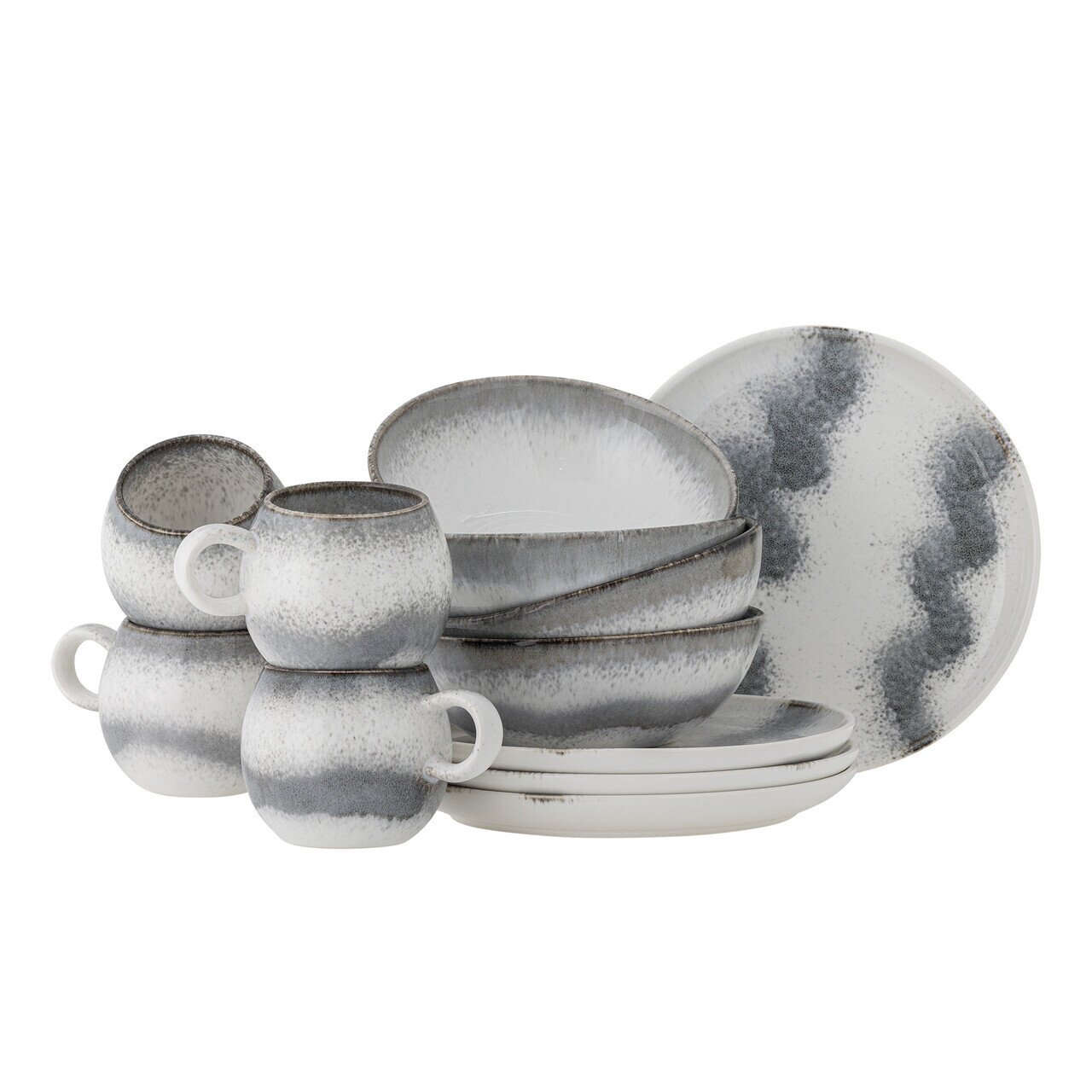 Set mic dejun 12 piese, Bloomingville, Paula, ceramica, gri