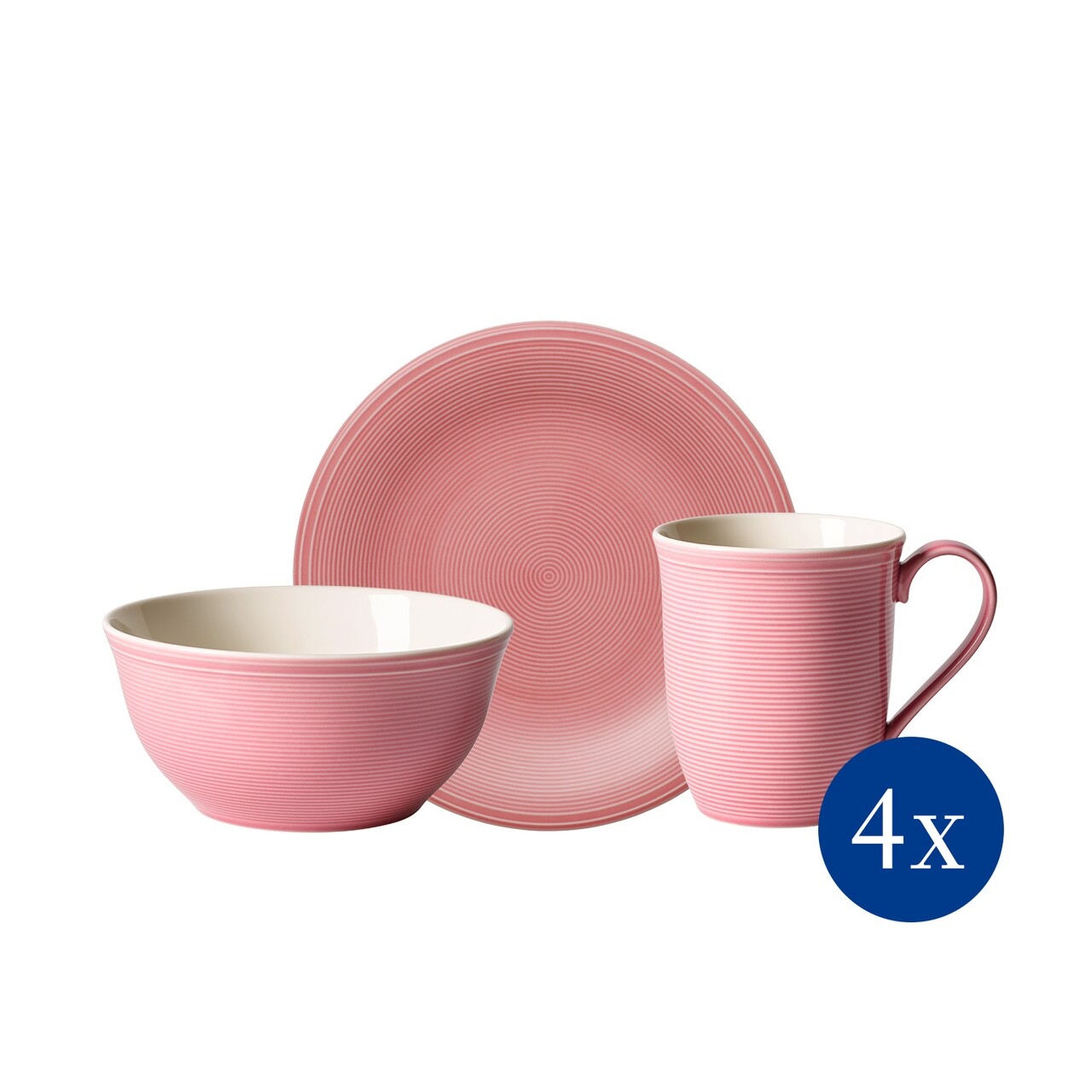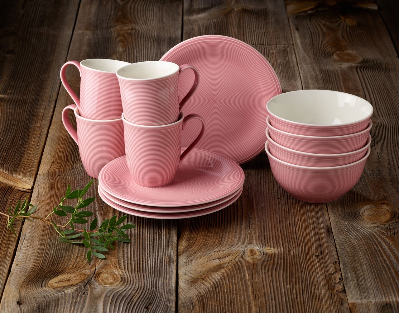 Set mic dejun 12 piese, Like Villeroy & Boch, Color Loop Rose, portelan premium, roz