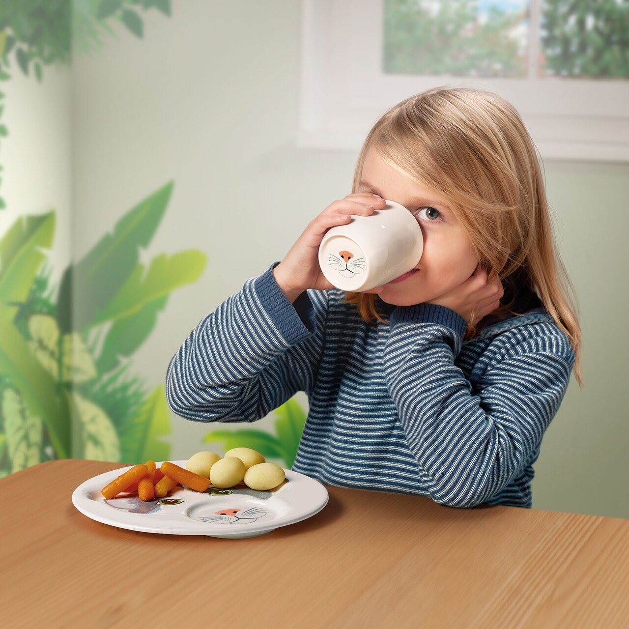 Colectia destinata copiilor, Animal Friends, ii transpune pe cei mici in minunata lume a animalutelor salbatice si domestice, transformand fiecare masa intr-o experienta minunata. Fiecare set ilustreaza un animal diferit si este compus dintr-o farfurie si o cana asortata. Atunci cand canuta este asezata invers pe farfurie, formeaza nasul animalului desenat. Sectiunea in care se amplaseaza paharul este o compartiment practic si pentru alte alimente sau sosuri.