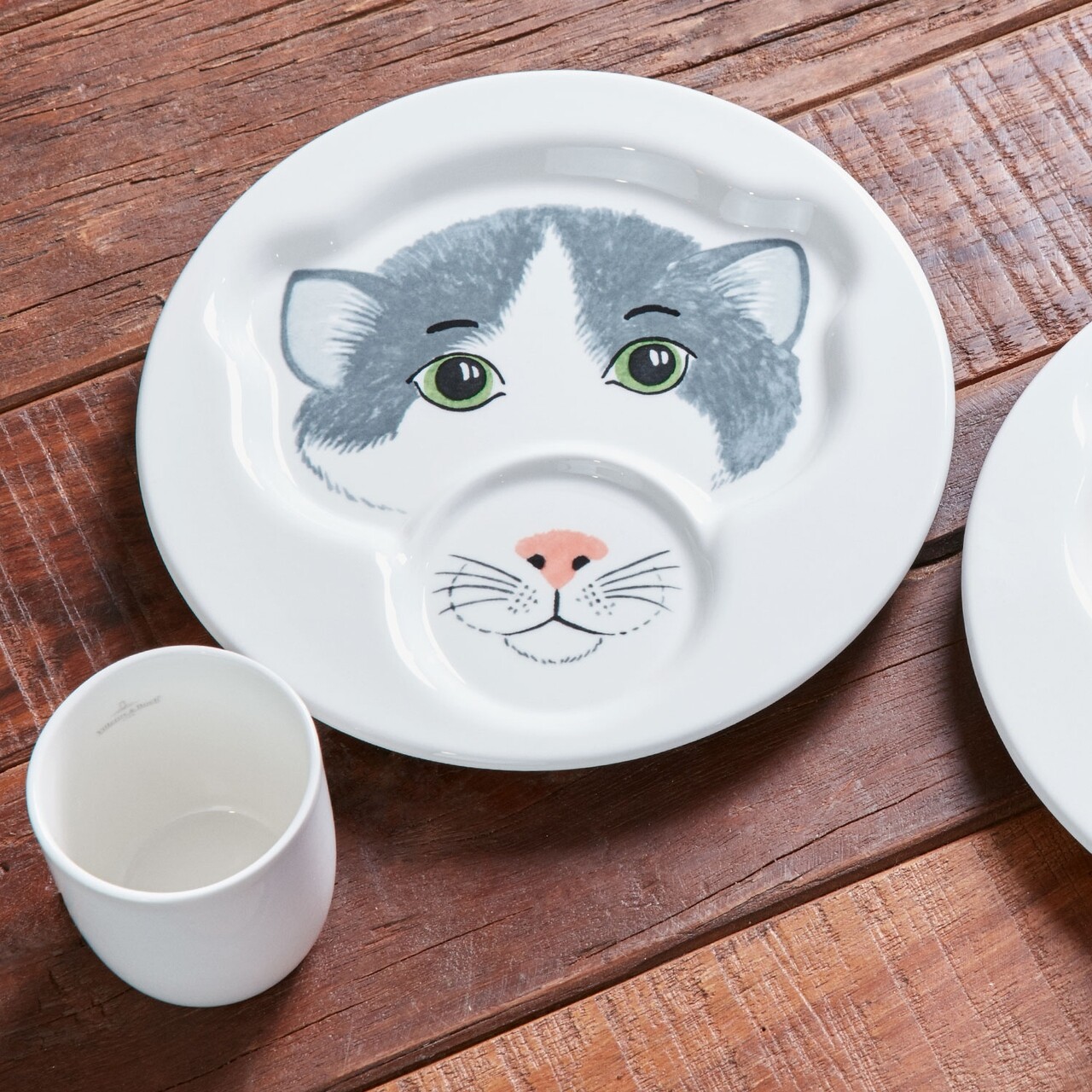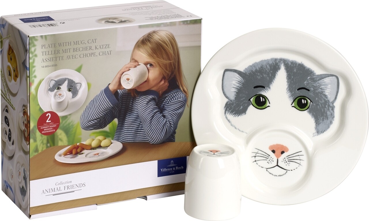 Set mic dejun copii 2 piese, Villeroy & Boch, Animal Friends Cat, Ø 22 cm/190 ml, portelan premium