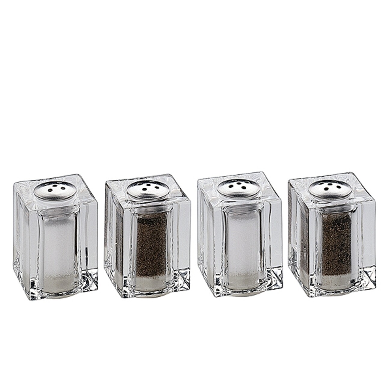 Set mini 4 recipiente pentru sare si piper, Kuchenprofi, 6.5 x 3.5 x 9 cm, acril, transparent