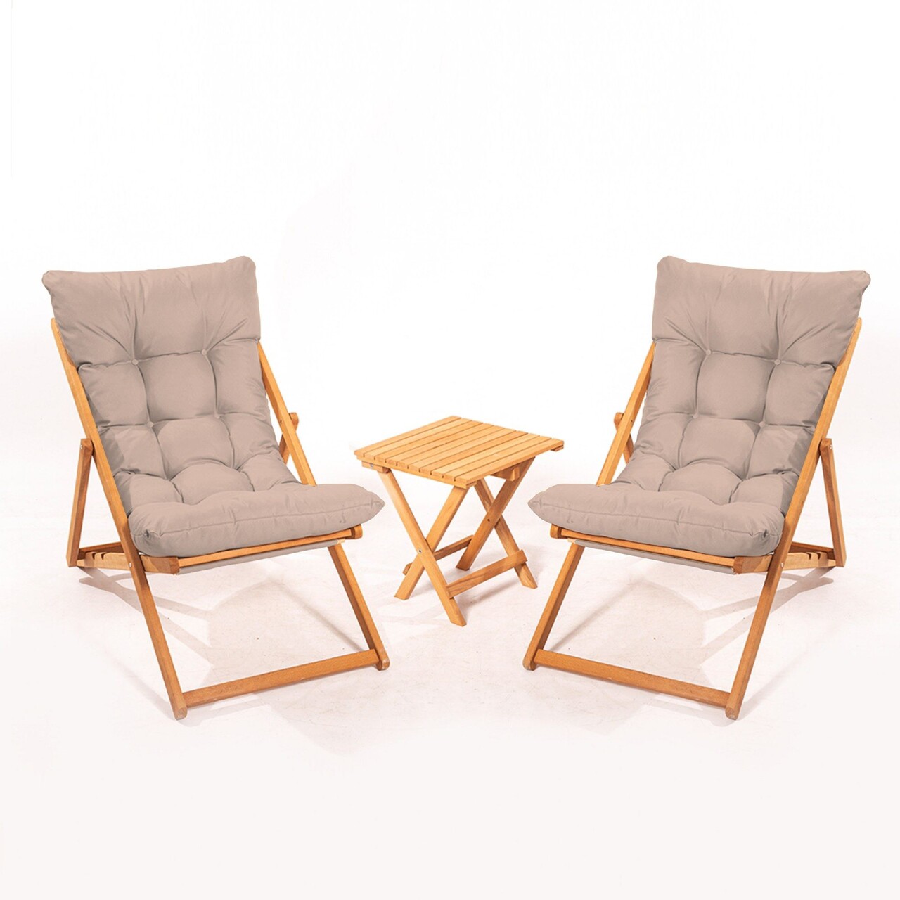 Set mobilier de gradina 3 piese, Meya Dekor, My005, Lemn de fag, Maro / Natural