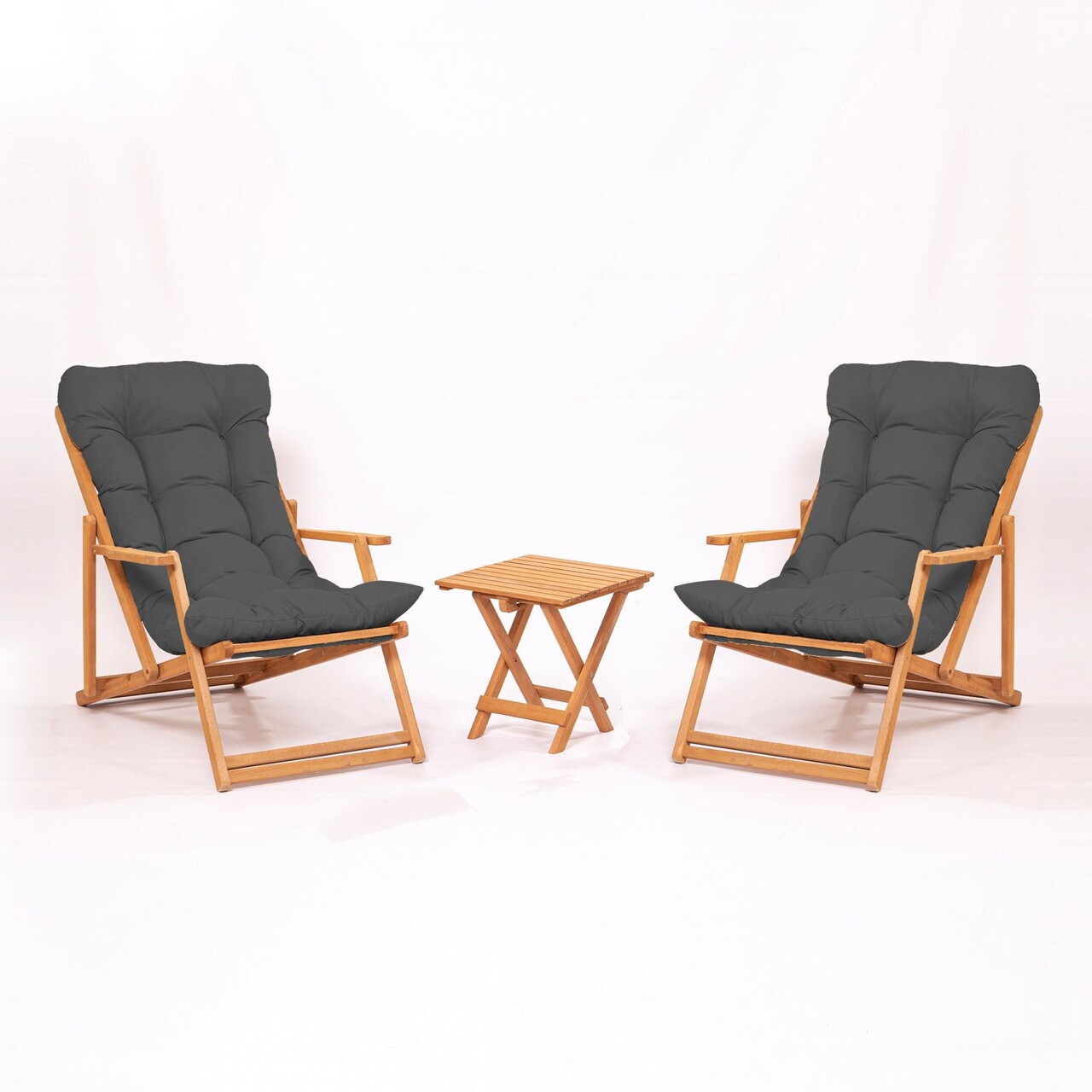 Set mobilier de gradina 3 piese, Meya Dekor, My007, Lemn de fag, Gri / Natural
