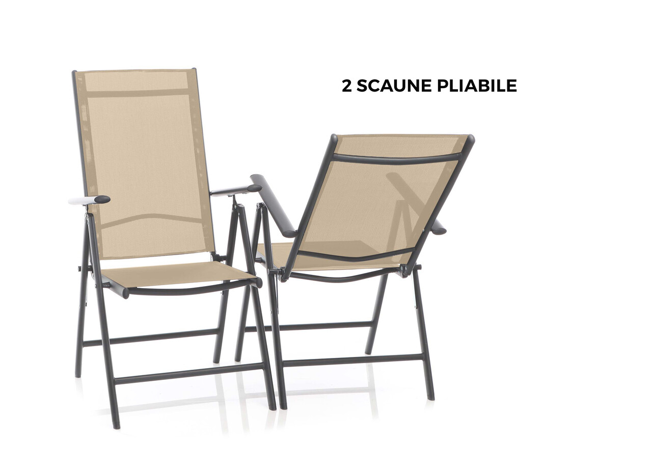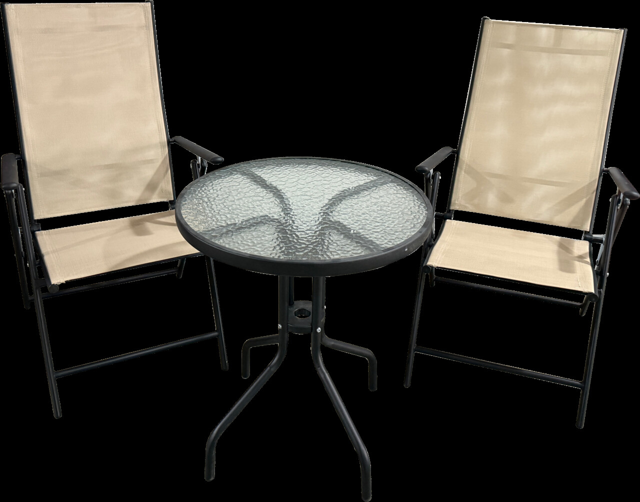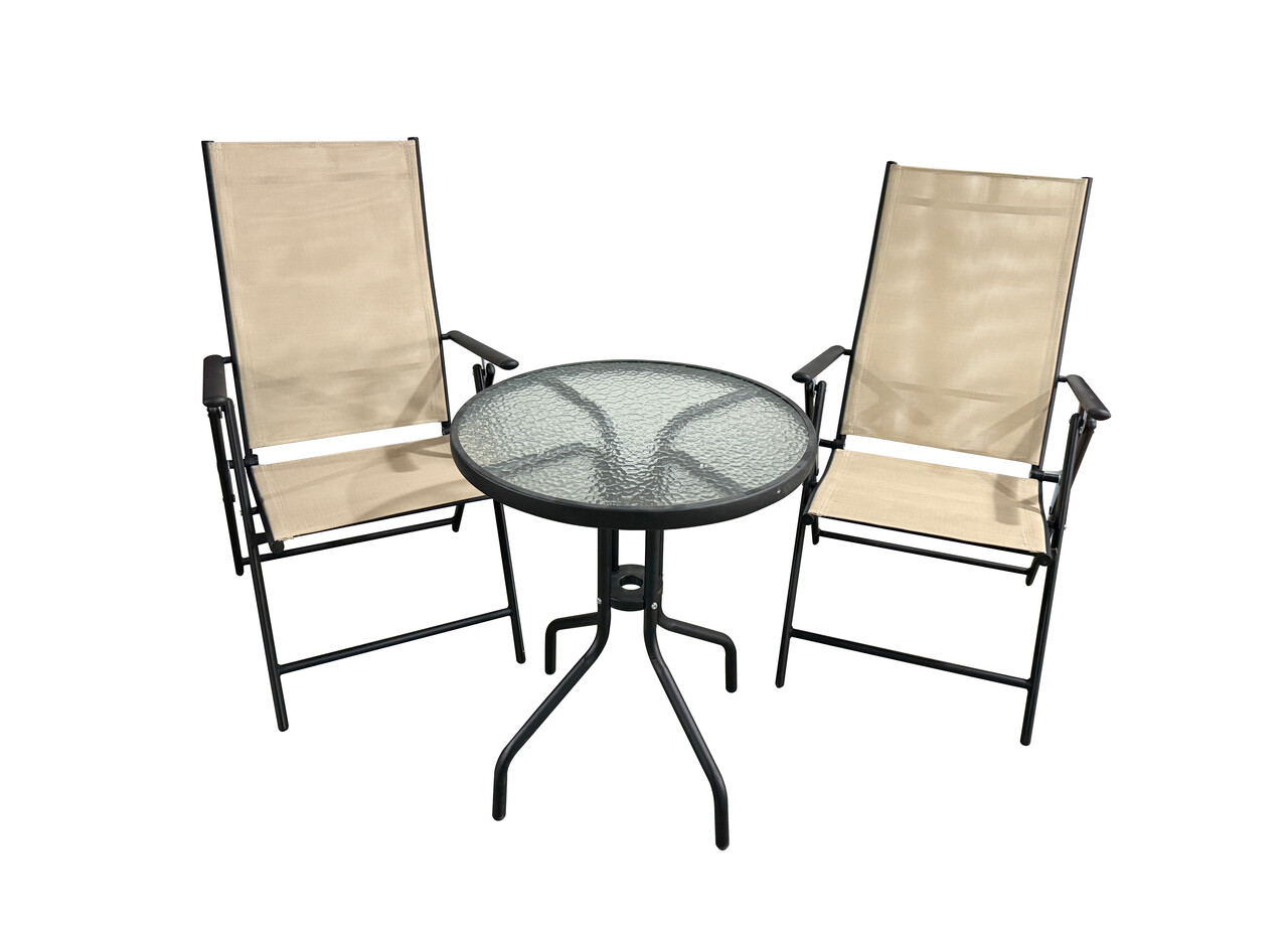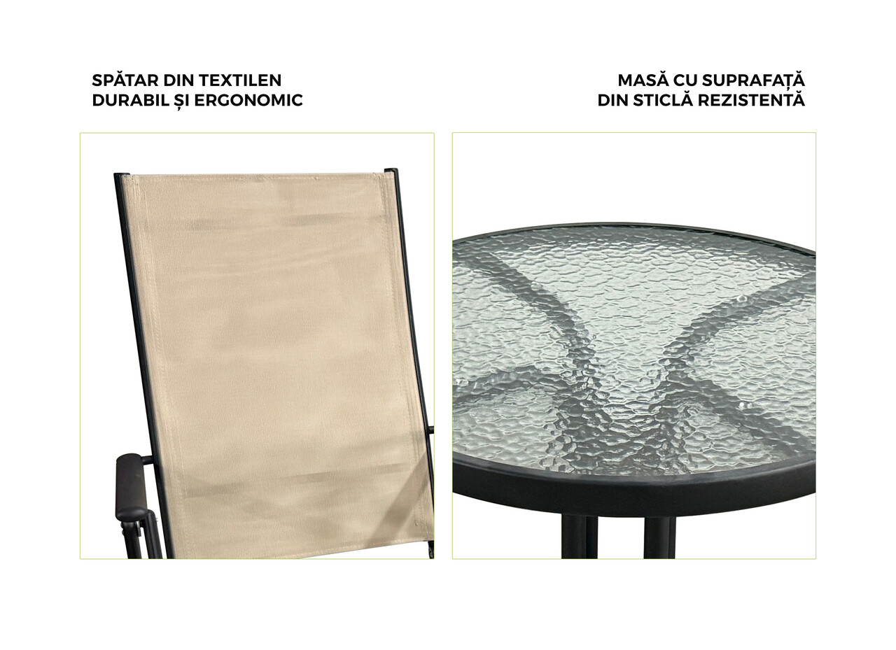 Set mobilier de gradina 3 piese Texas, Heinner, 60x71 cm/56x68x105 cm, otel/sticla/textil, bej/negru