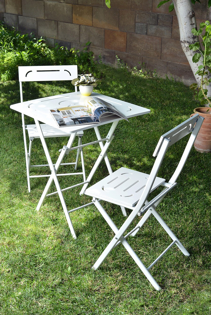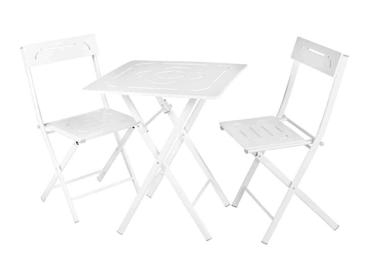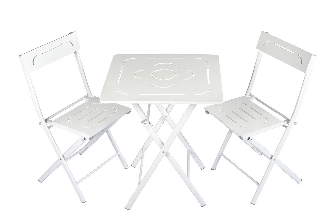 Set mobilier de gradina 3 piese, Valovi, Bistro Set 2, MDF , Alb