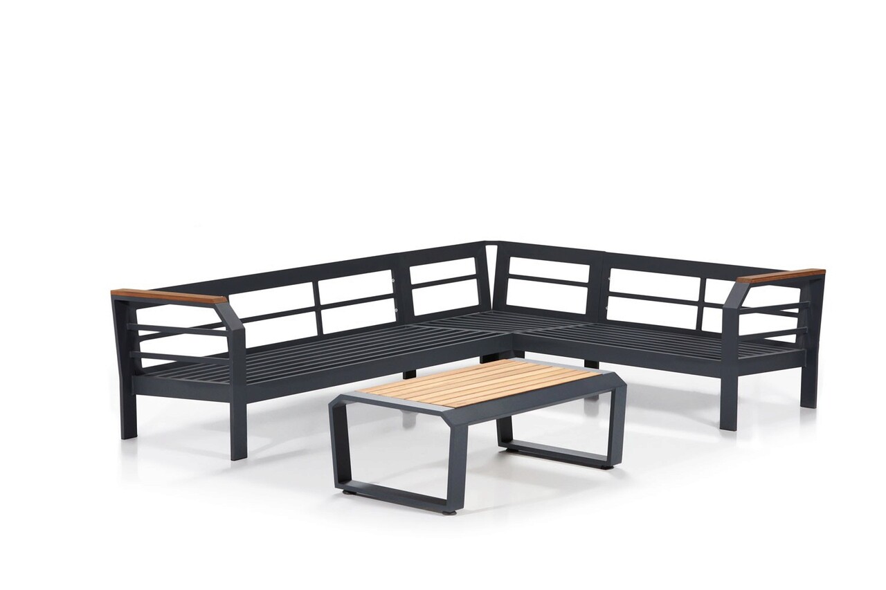 Set mobilier de gradina, Clara, Assento Corner, Aluminiu, Gri / Galben / Negru