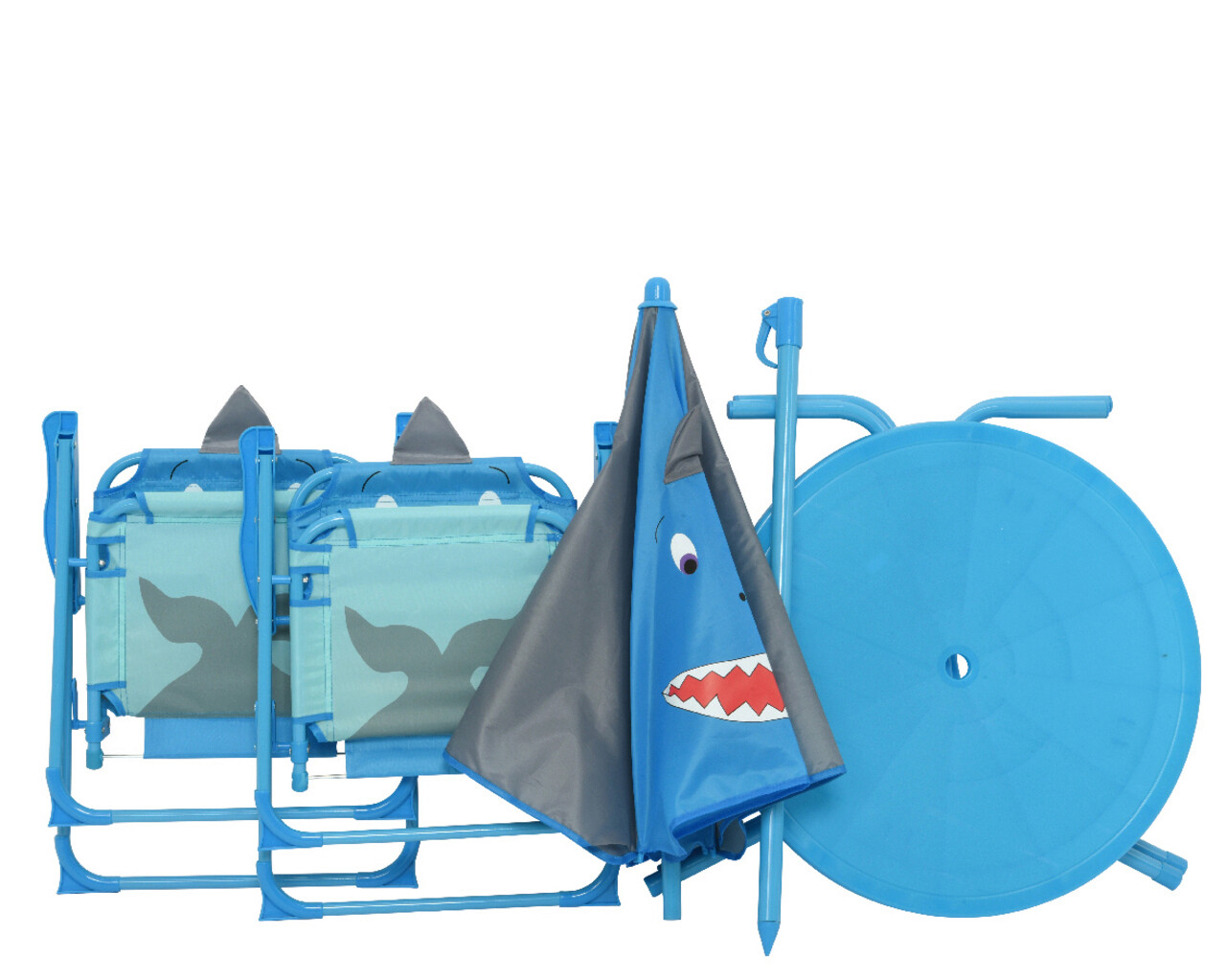 Set mobilier de gradina pentru copii Shark, Decoris, 4 piese, fier/poliester, albastru