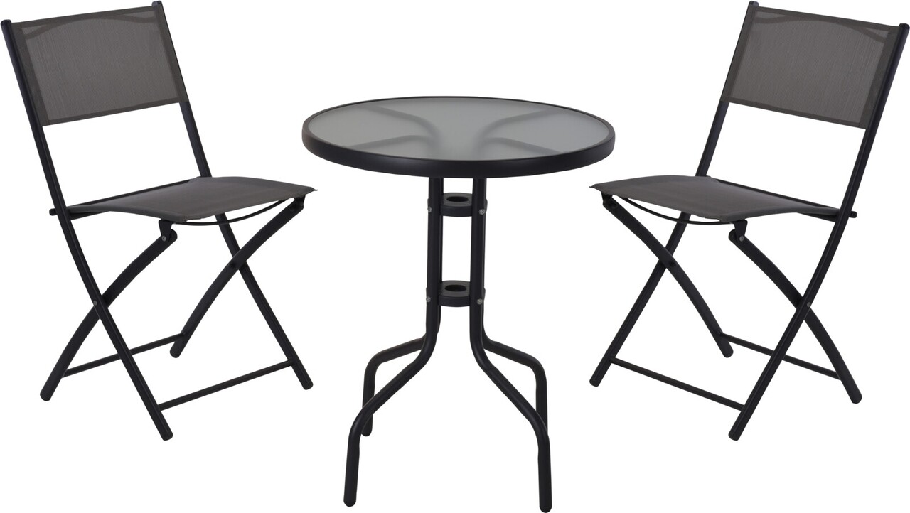 2 scaune cu dimensiunea de 46x51x85 cm si 1 masa cu dimensiunea 60x70 cm