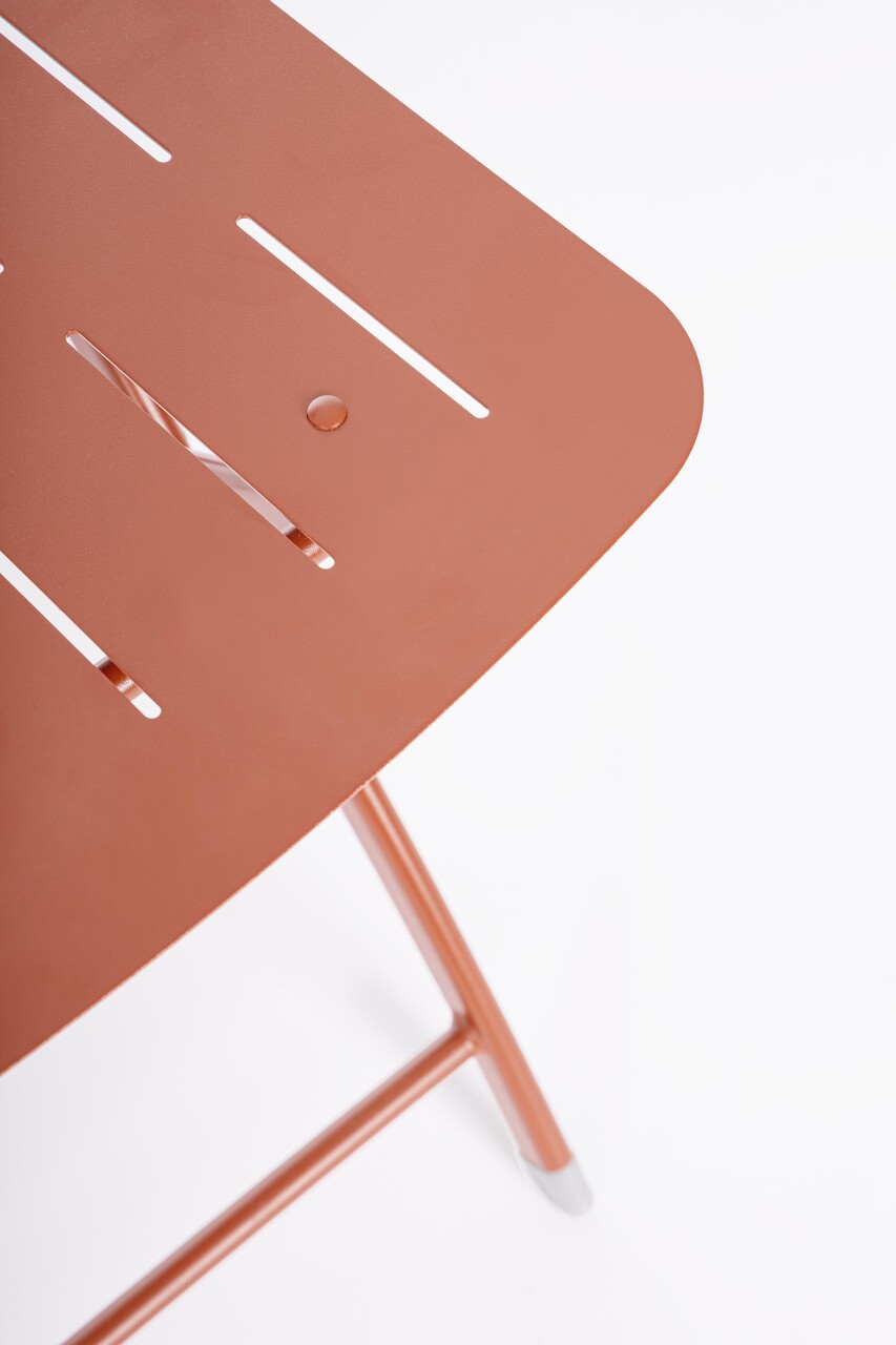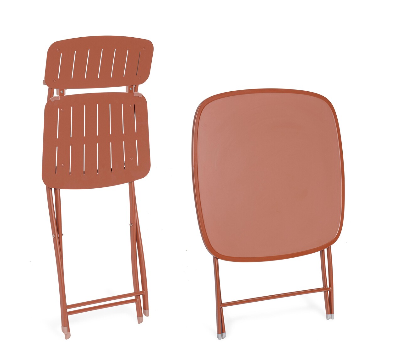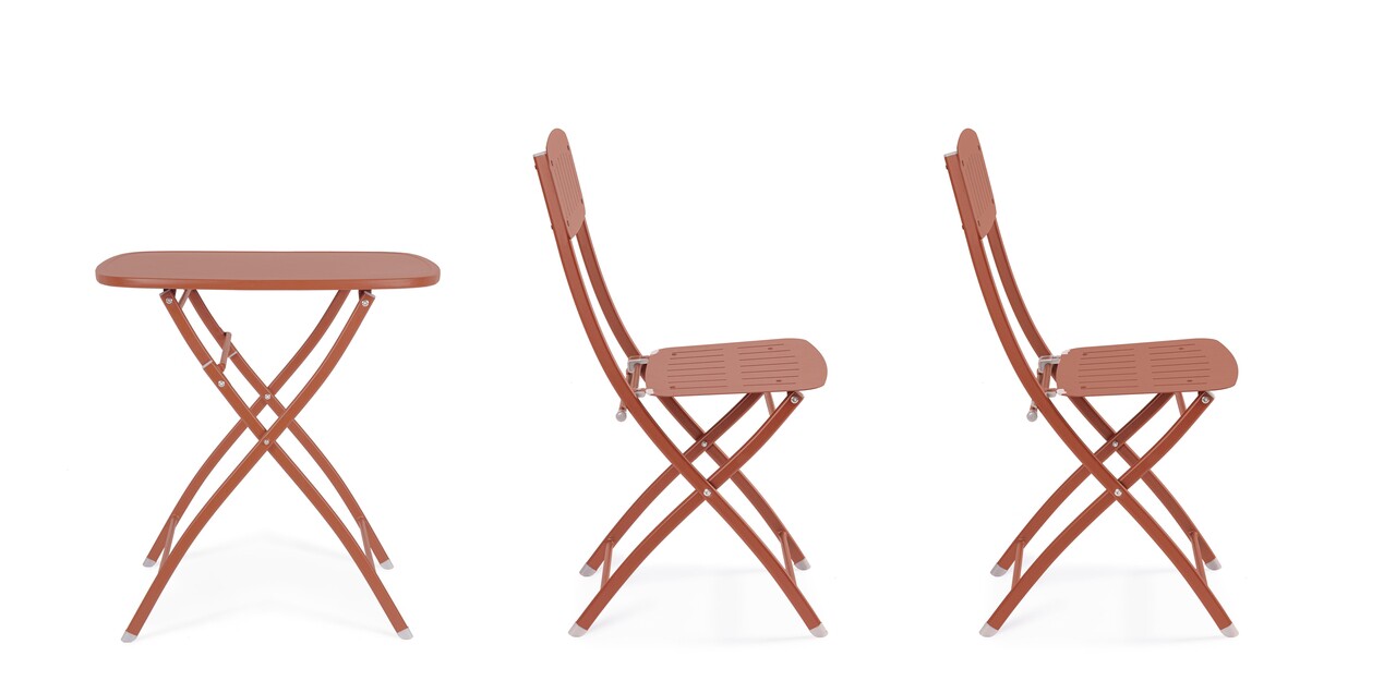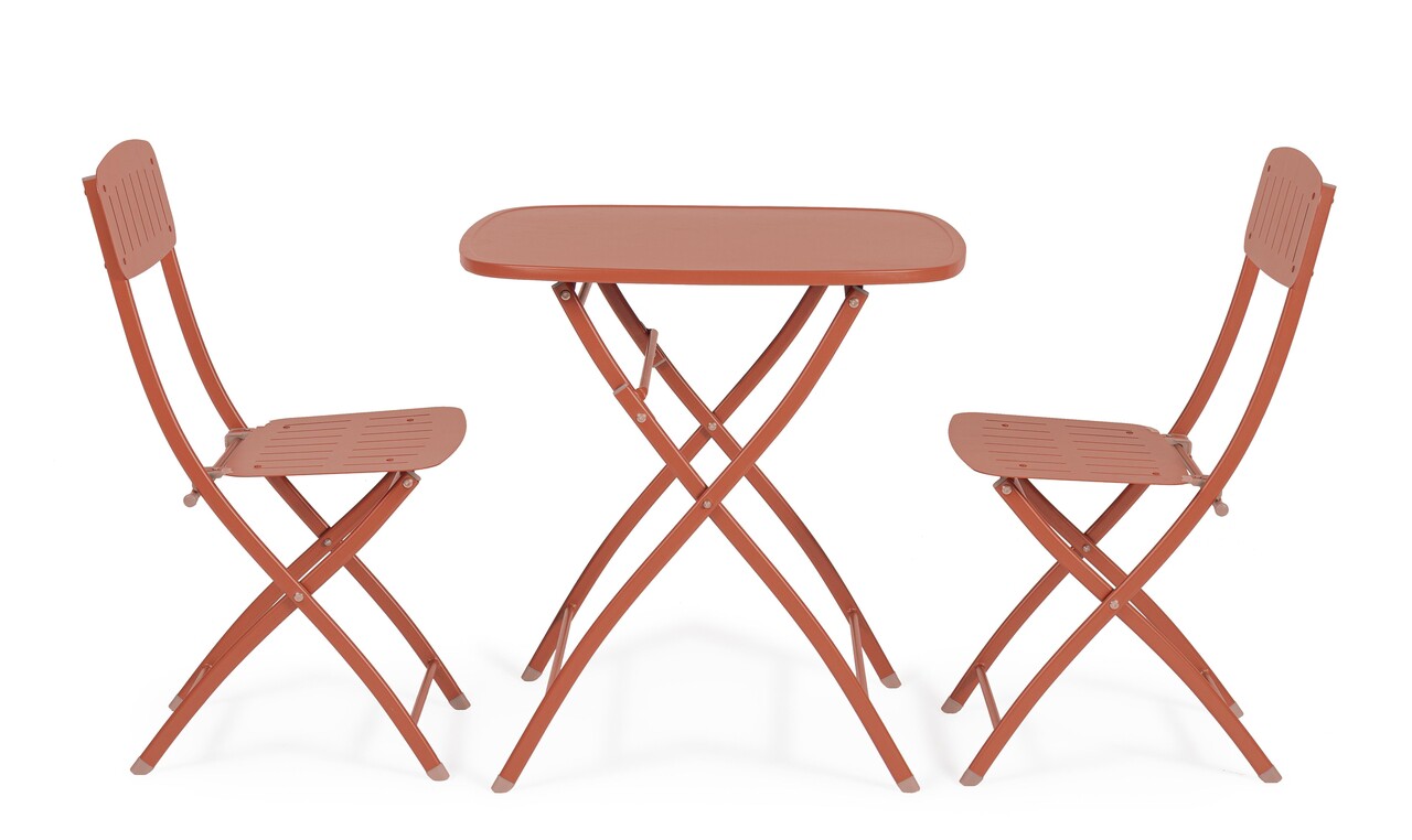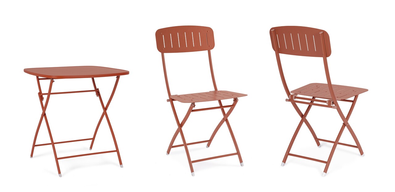 Set mobilier de gradina/terasa 3 piese, masa si scaune pliabile Yvonne, Bizzotto, 70x70x72 cm/44x50x85 cm, otel, invelis e-coating, finisaj mat, teracota