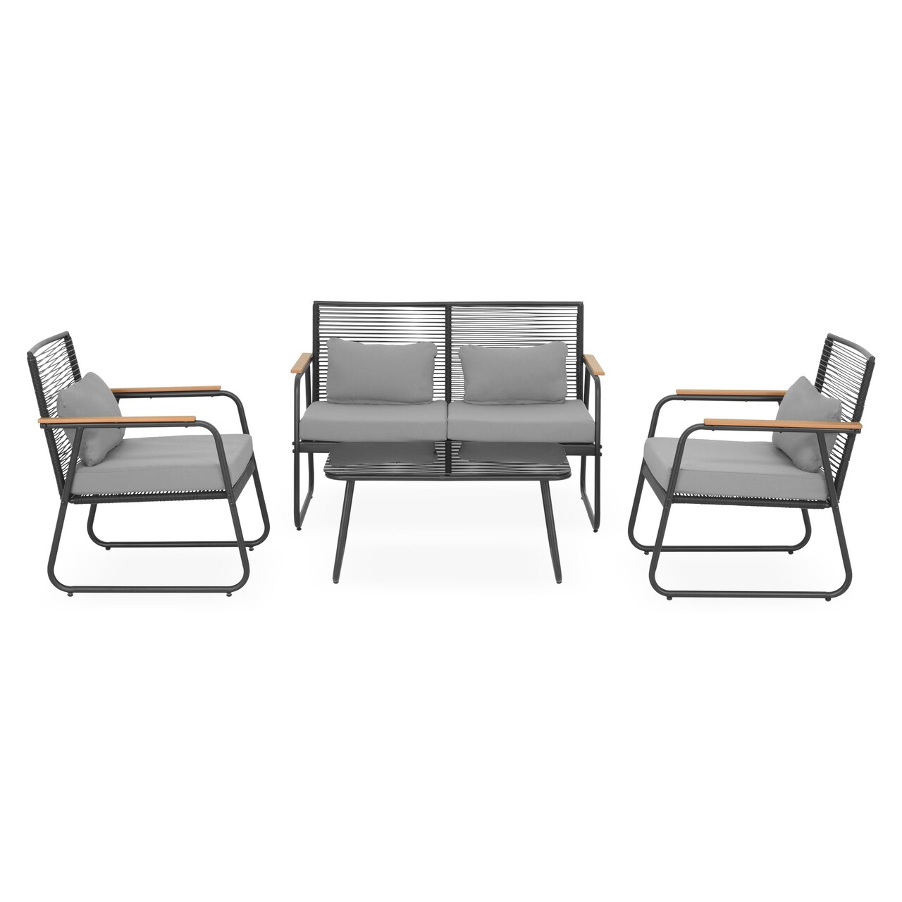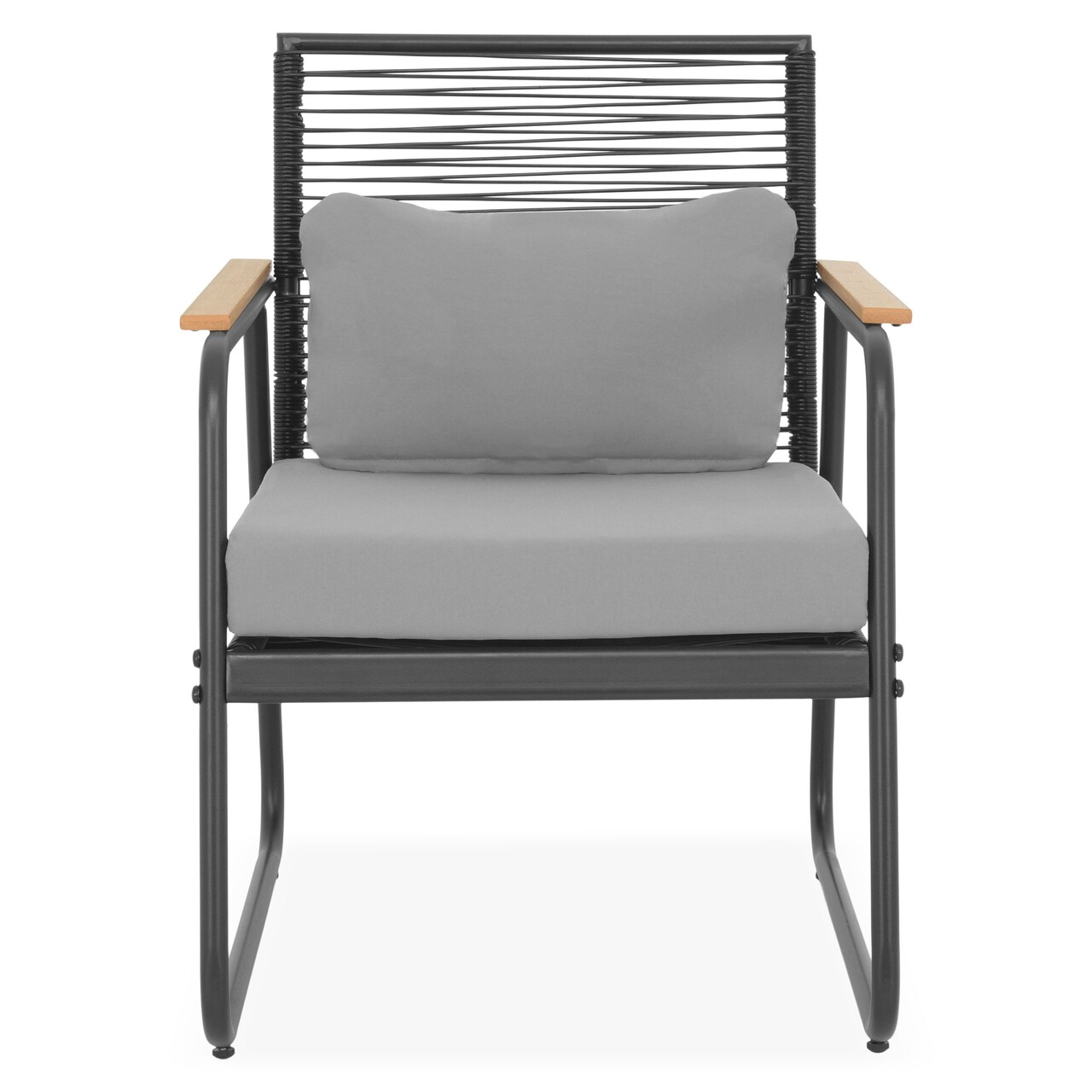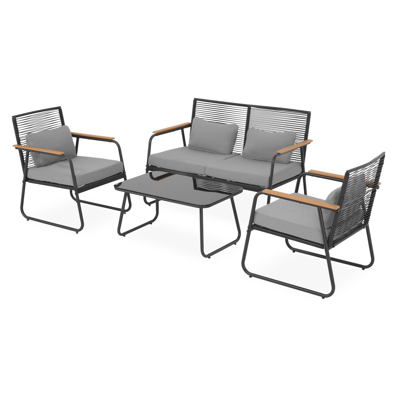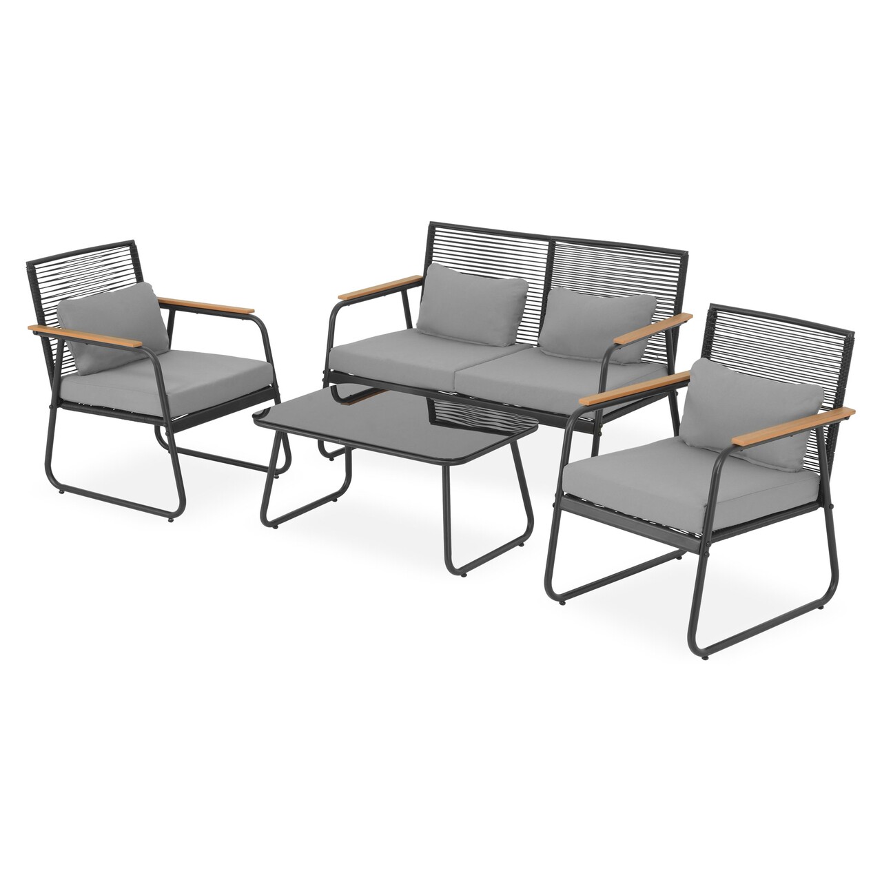 Set mobilier gradina/terasa, 2 fotolii + canapea + masuta, otel, negru/gri