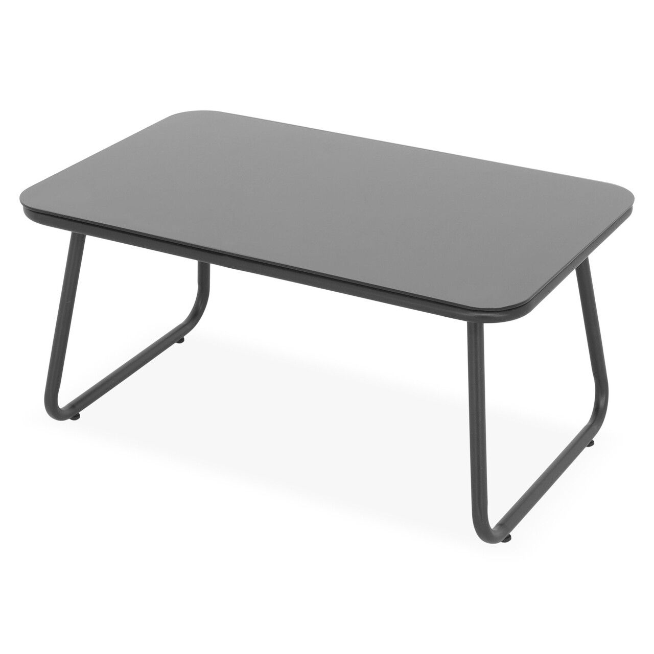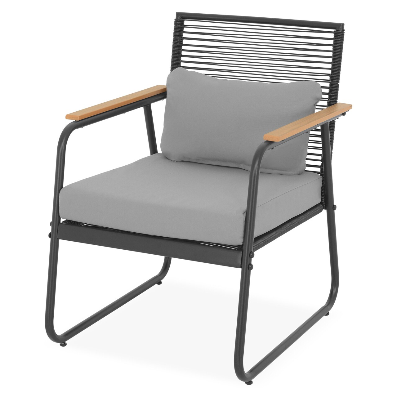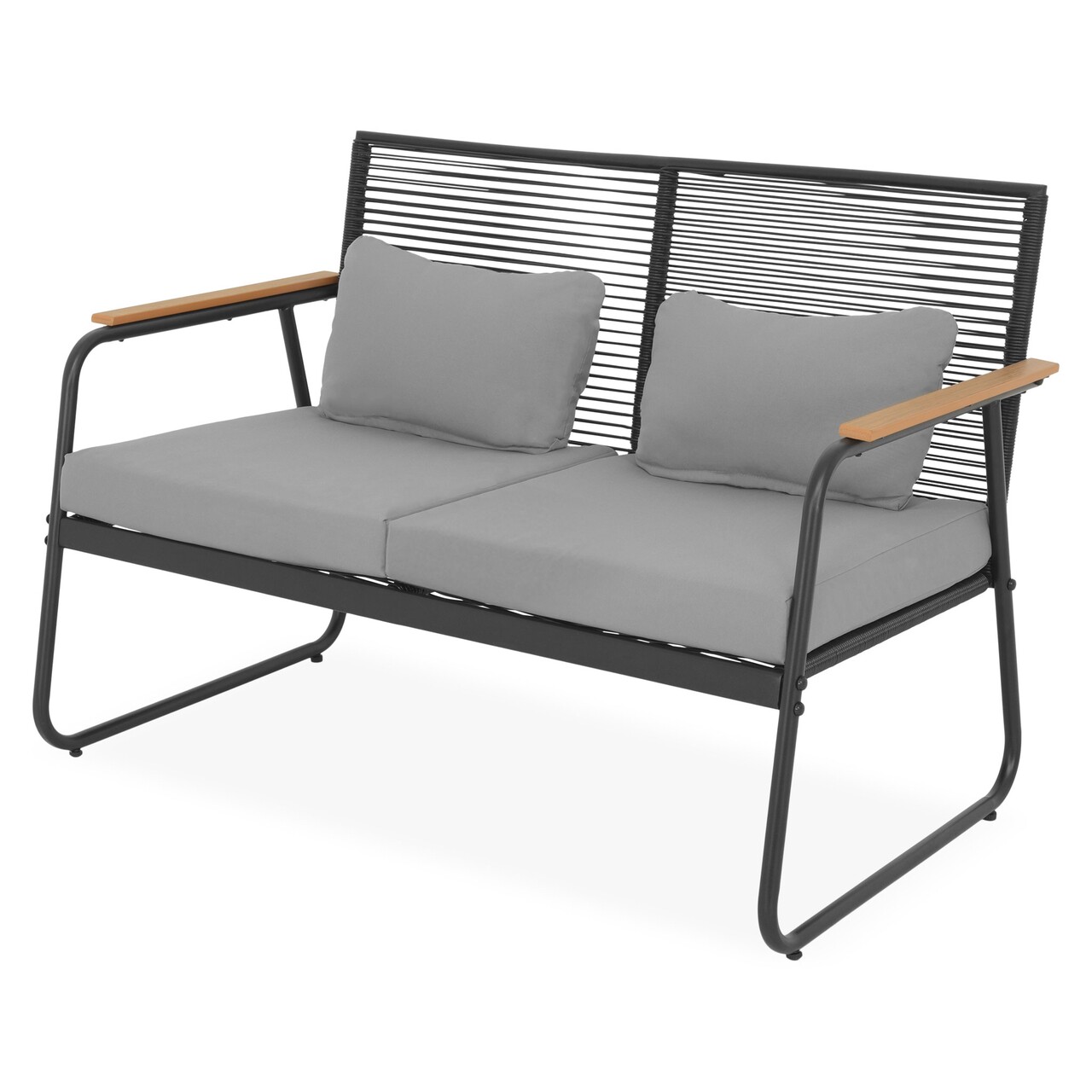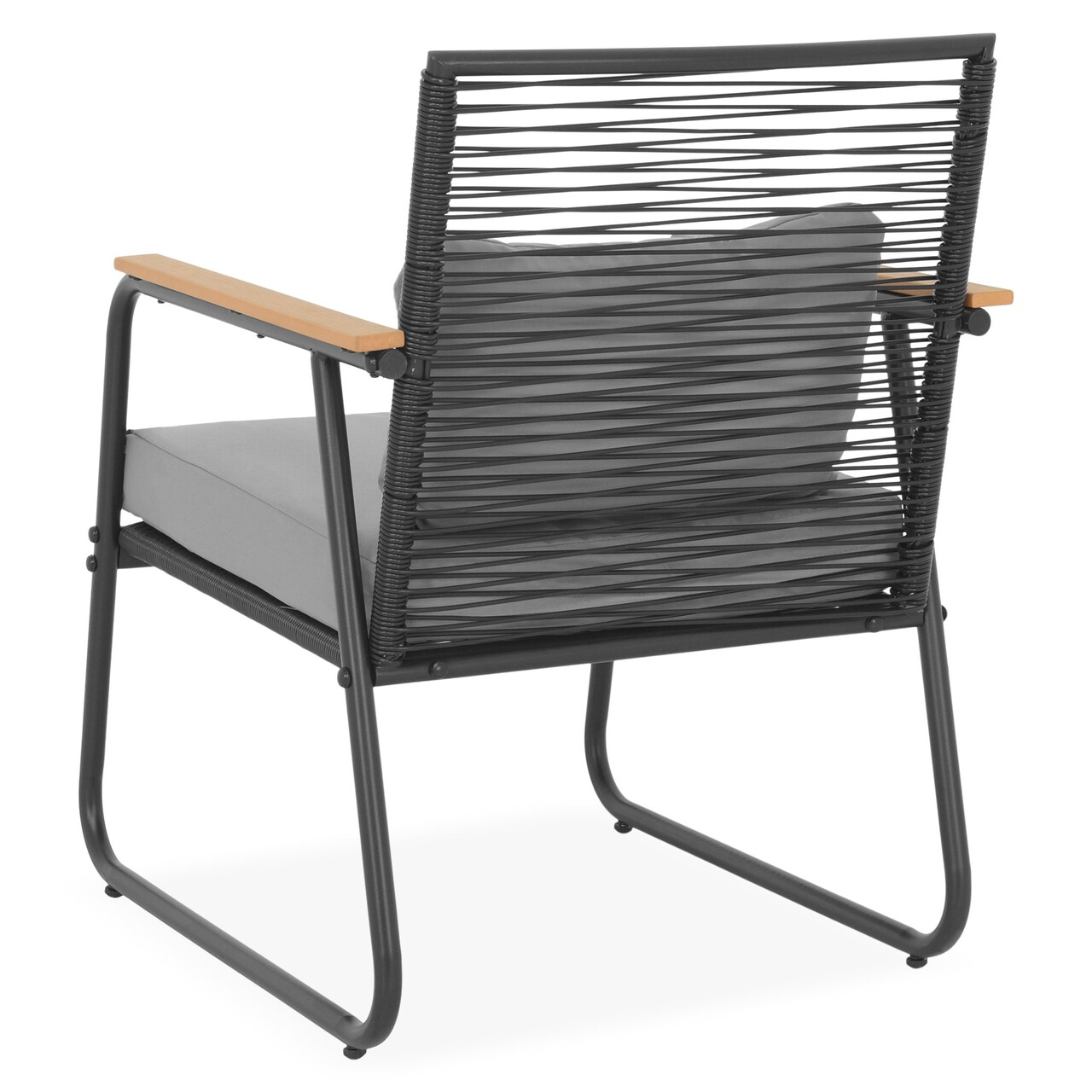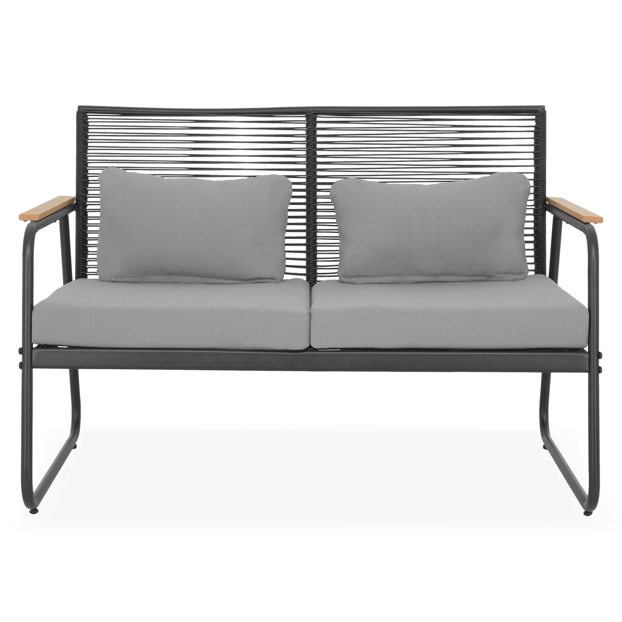 Set mobilier gradina/terasa, 2 fotolii + canapea + masuta, otel, negru/gri