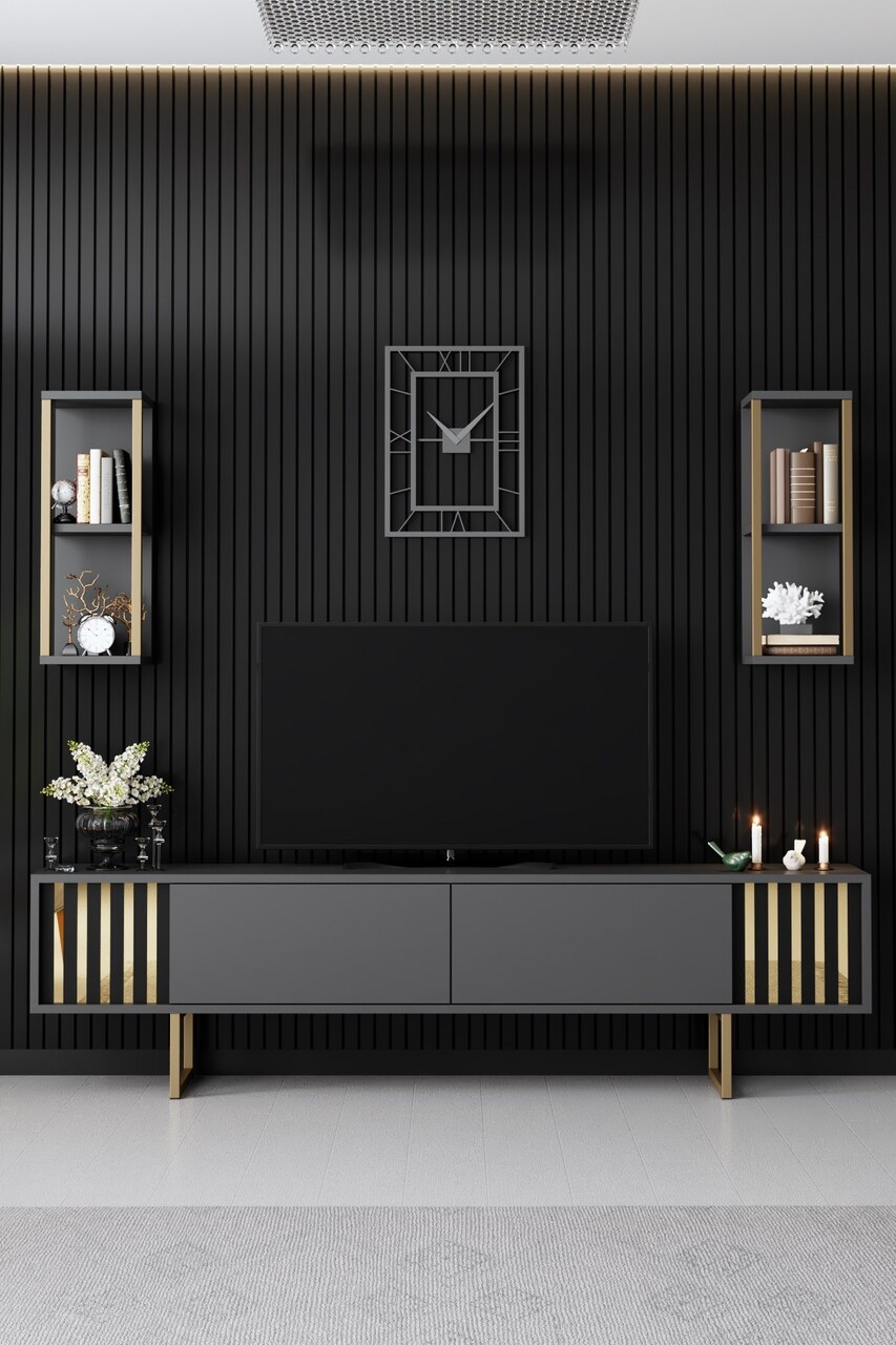Set mobilier living, Bexley, Gold Line, PAL, Antracit / Aur