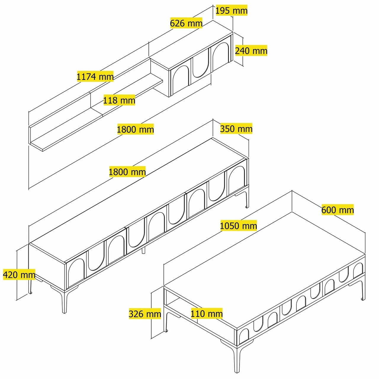 Dimensiunea unității TV: Latime: 180 cm Inaltime: 42 cm Adancime: 35 cm