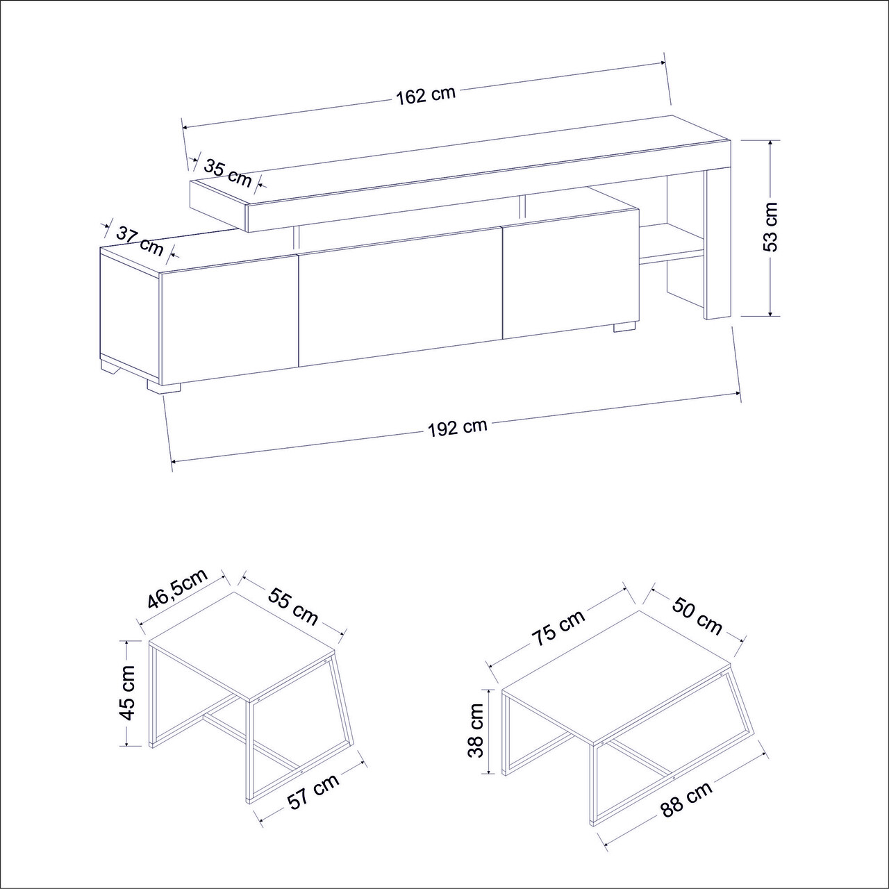 Masute: Latime: 88 cm Inaltime: 38 cm Adancime: 50 cm (1 piesa)