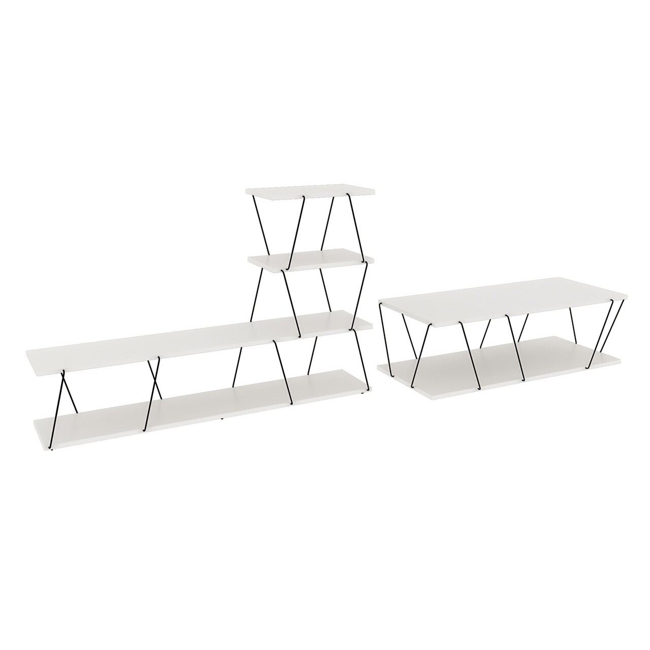 Set mobilier living, Kalune Design, Basak, PAL, Alb/Negru