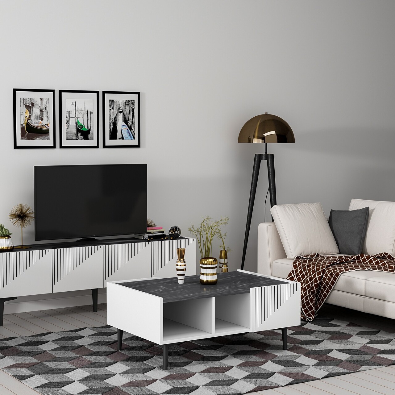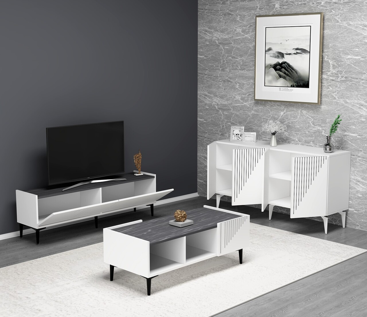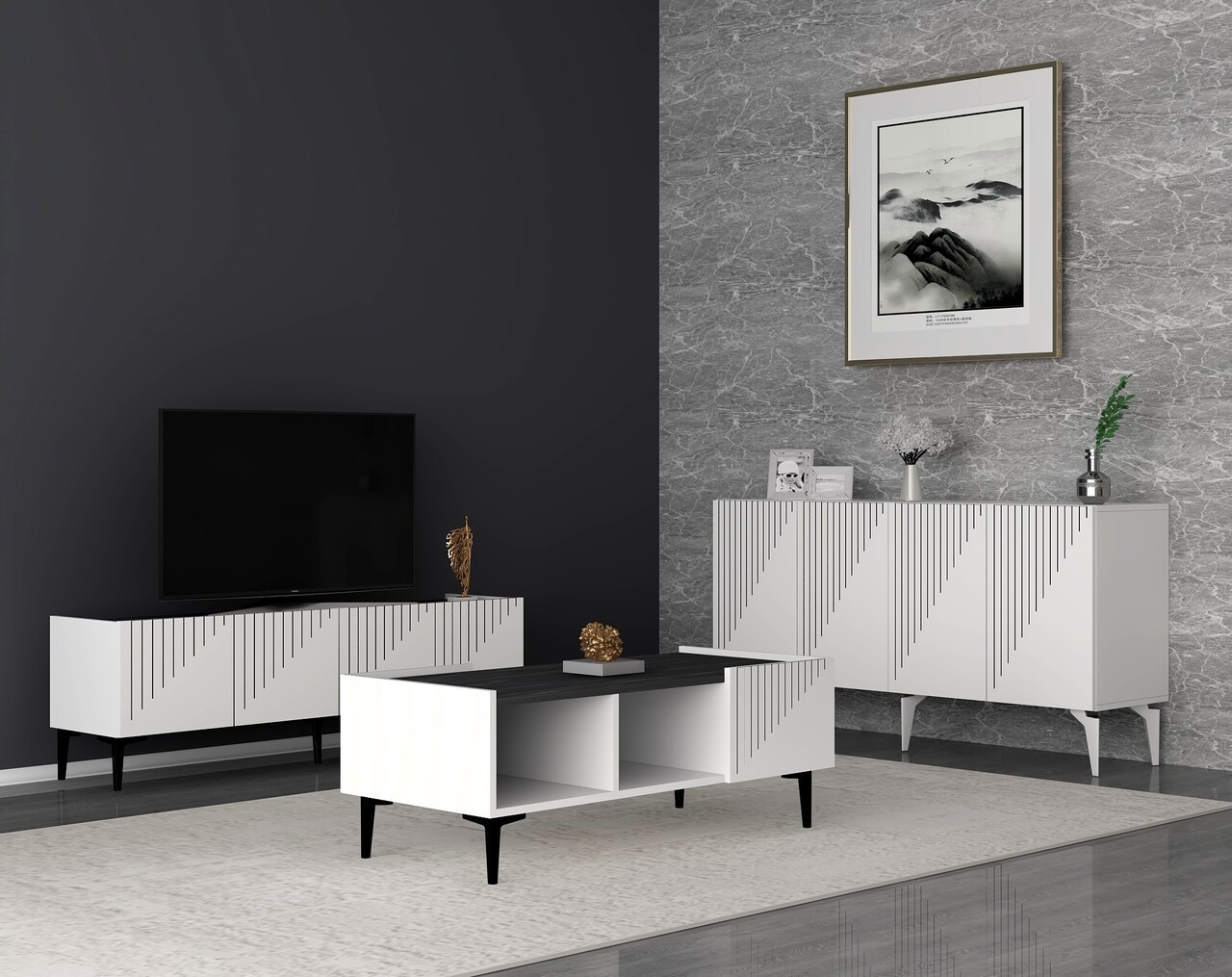 Set mobilier living, Olivia, Draw, PAL , Alb/Negru