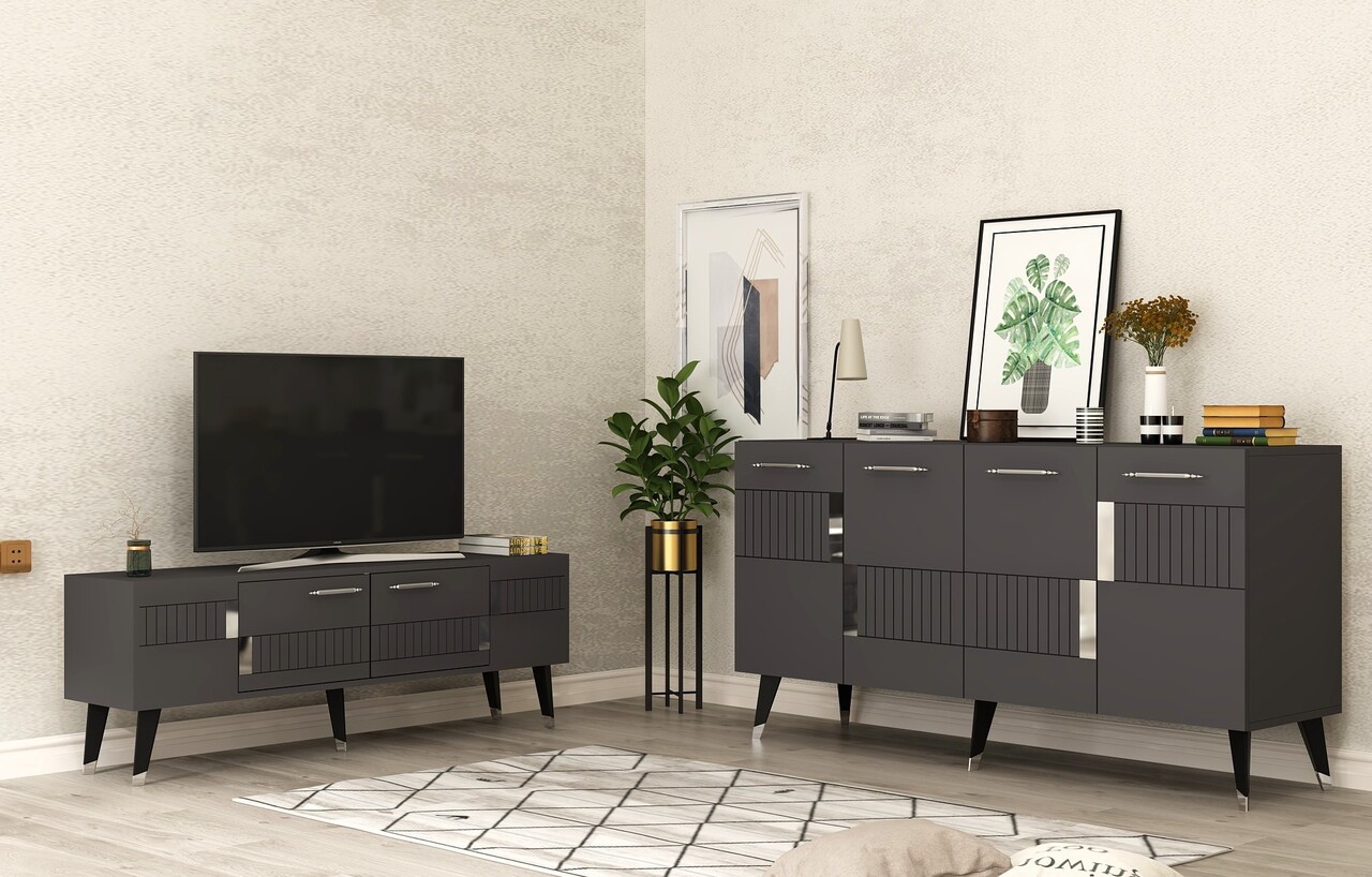 Set mobilier living, Olivia, Moda, PAL , Antracit / Argintiu