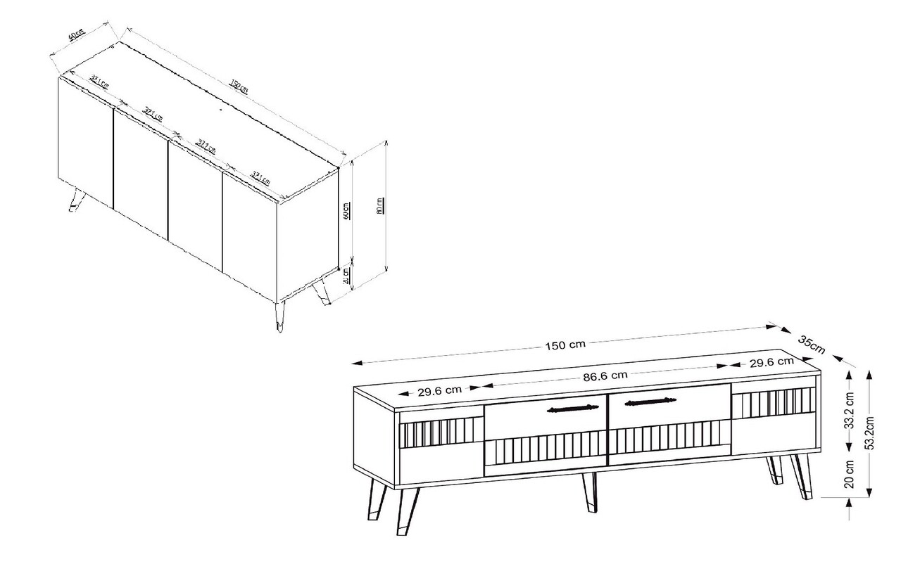 Suport TV: Latime: 150 Inaltime: 35 cm Adancime: 53,2 cm
