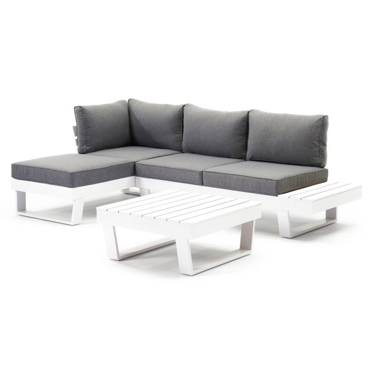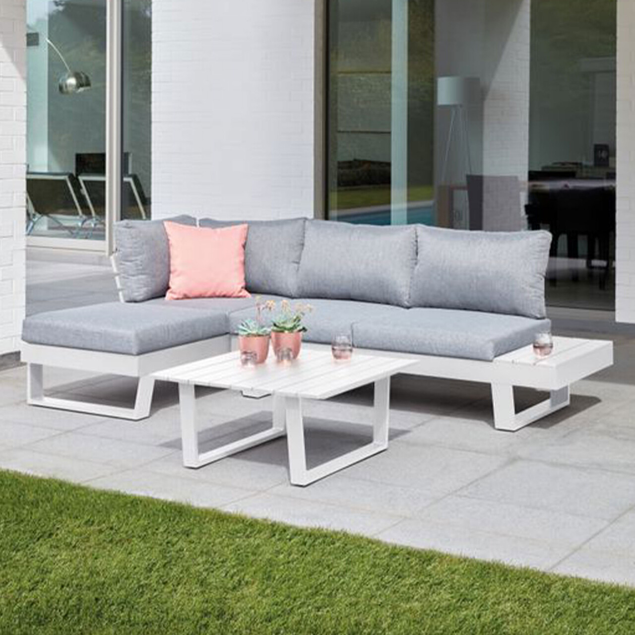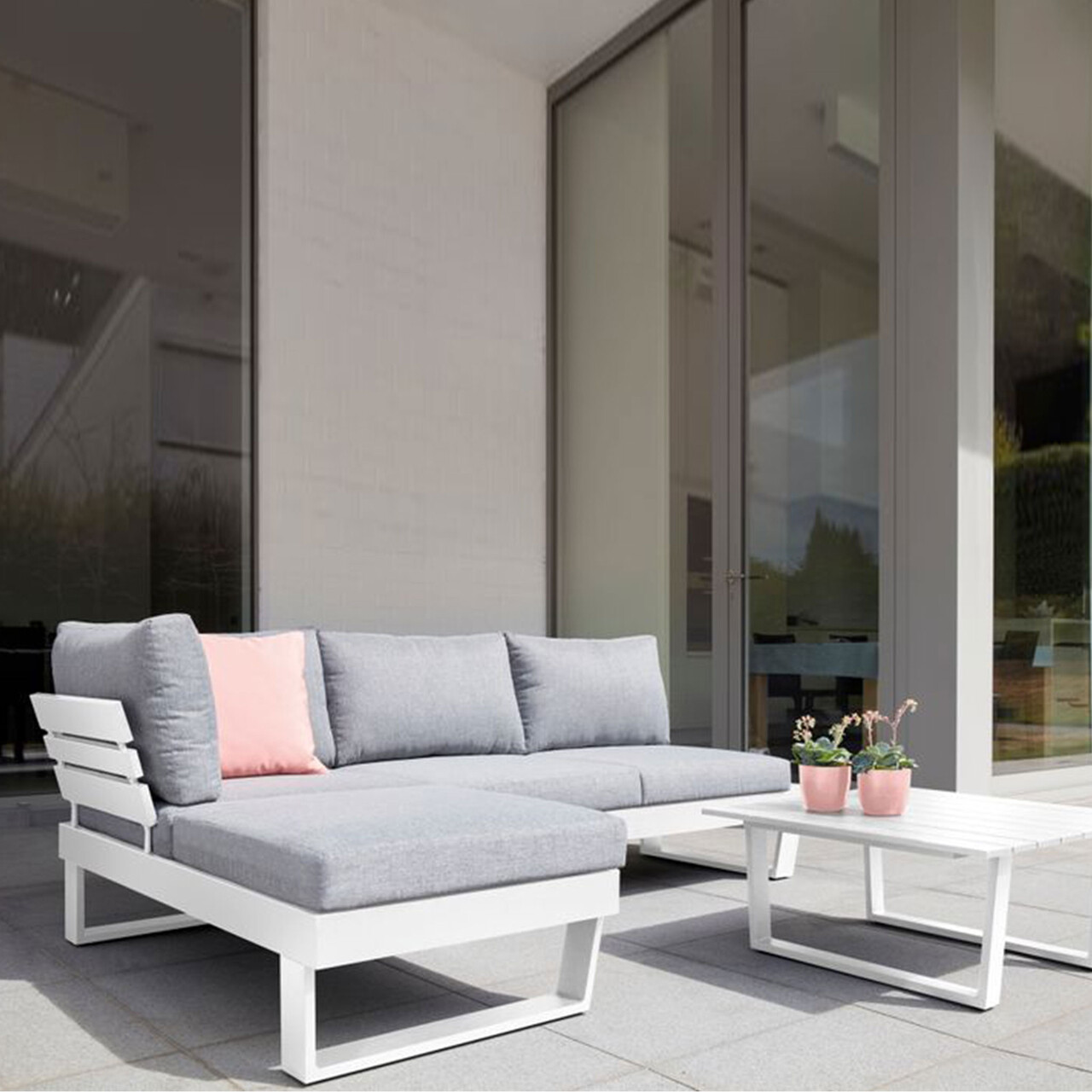 Set mobilier pentru exterior, 3 piese Alora, 242x138x77 cm, aluminiu/poliester, alb/gri