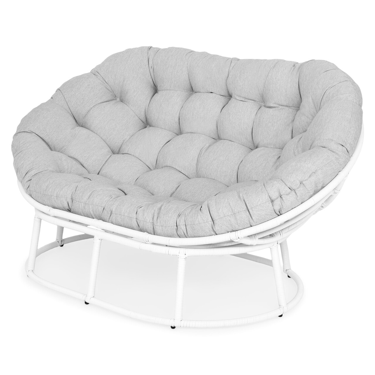 Set mobilier pentru exterior, 4 piese Papasans, otel/poliester, alb/gri