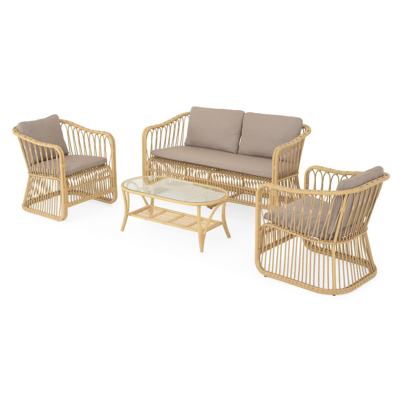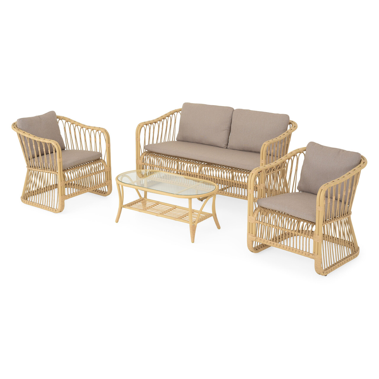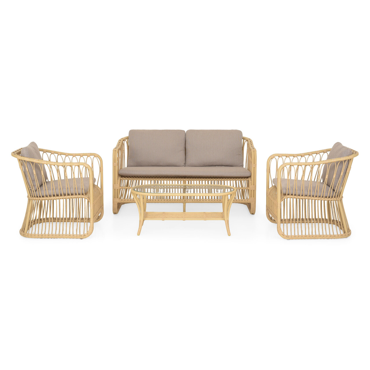 Set mobilier pentru exterior, 4 piese Surabaya, 77x67.5x79 cm, aluminiu/sticla securizata, natur/gri