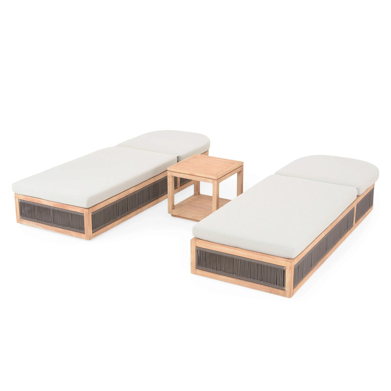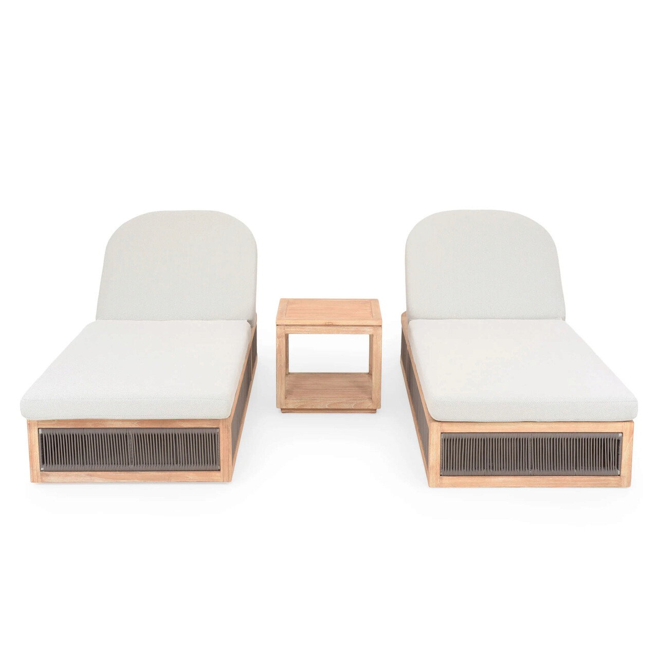 Set mobilier pentru gradina/terasa, 2 sezlonguri si masuta Elba, poliester/lemn de teak, natur/gri
