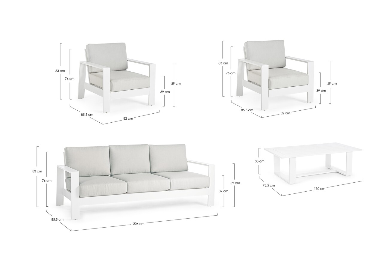 Set mobilier pentru gradina/terasa 4 piese Baltic, Bizzotto, aluminiu/tesatura ofelin, alb