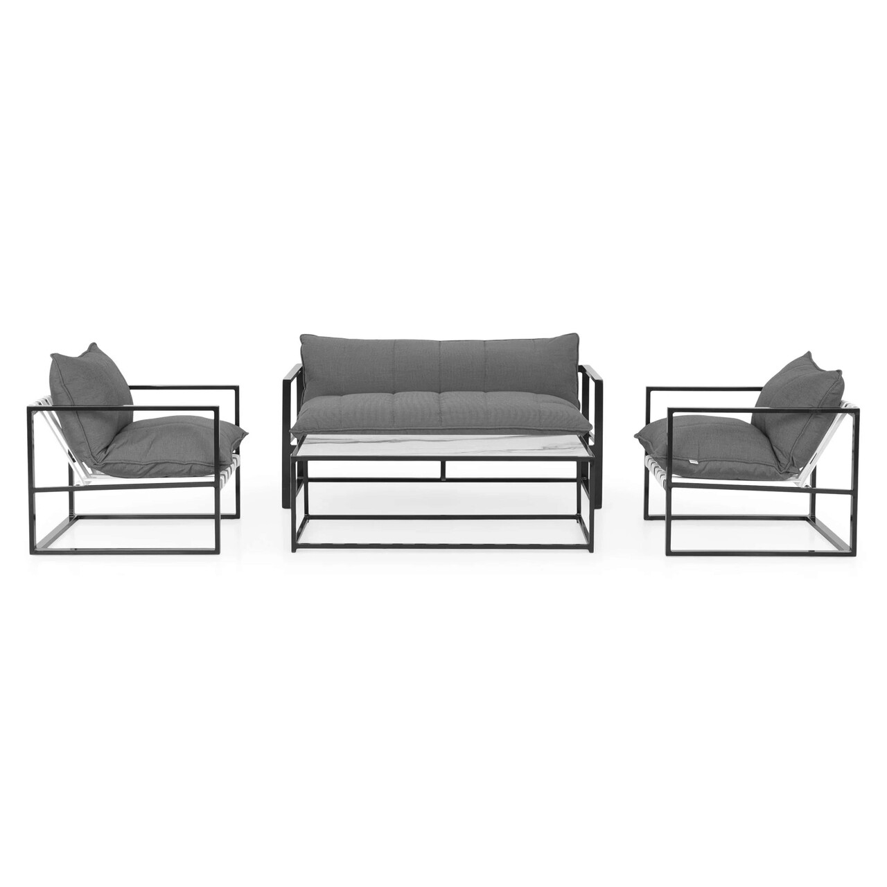 Set mobilier pentru gradina/terasa, 4 piese, Reef, 124x64.5x40 cm / 79x77x61 cm, aluminiu, gri/negru